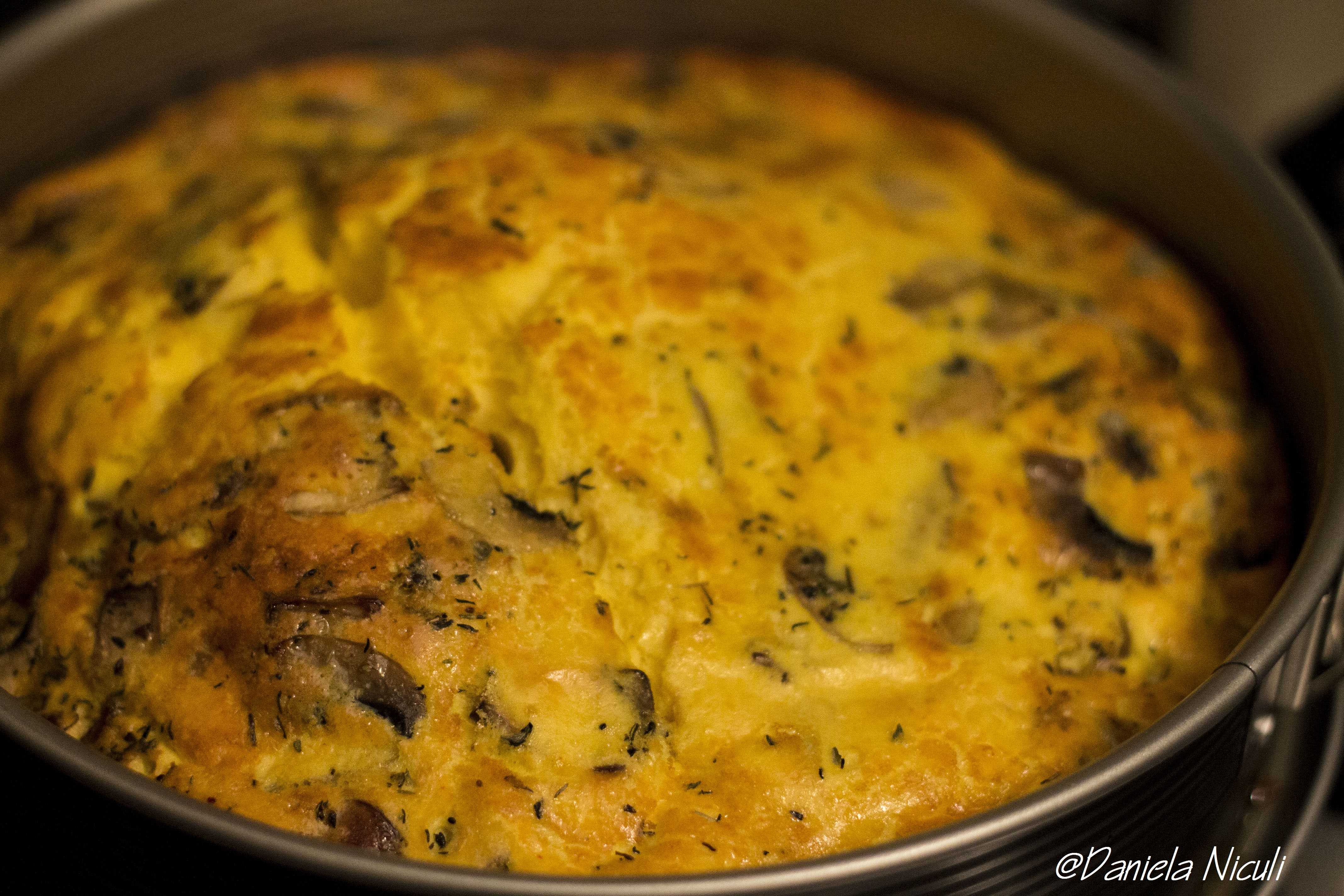 Se poate testa cu varful unui cutit inserat, daca acesta iese curat inseamna ca masa este gata, o frittata cu ciuperci pufoasa, foarte gustoasa si aromata.