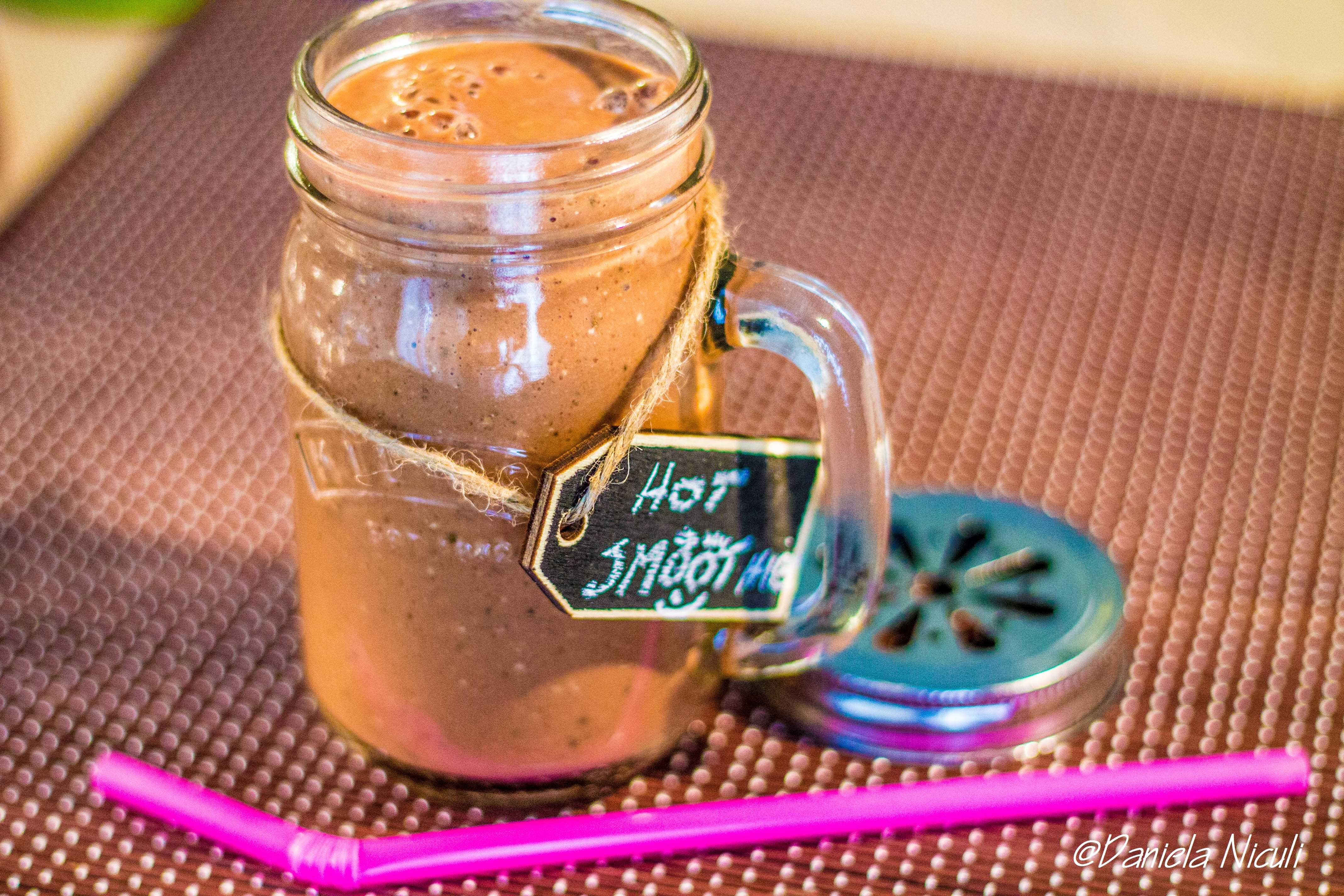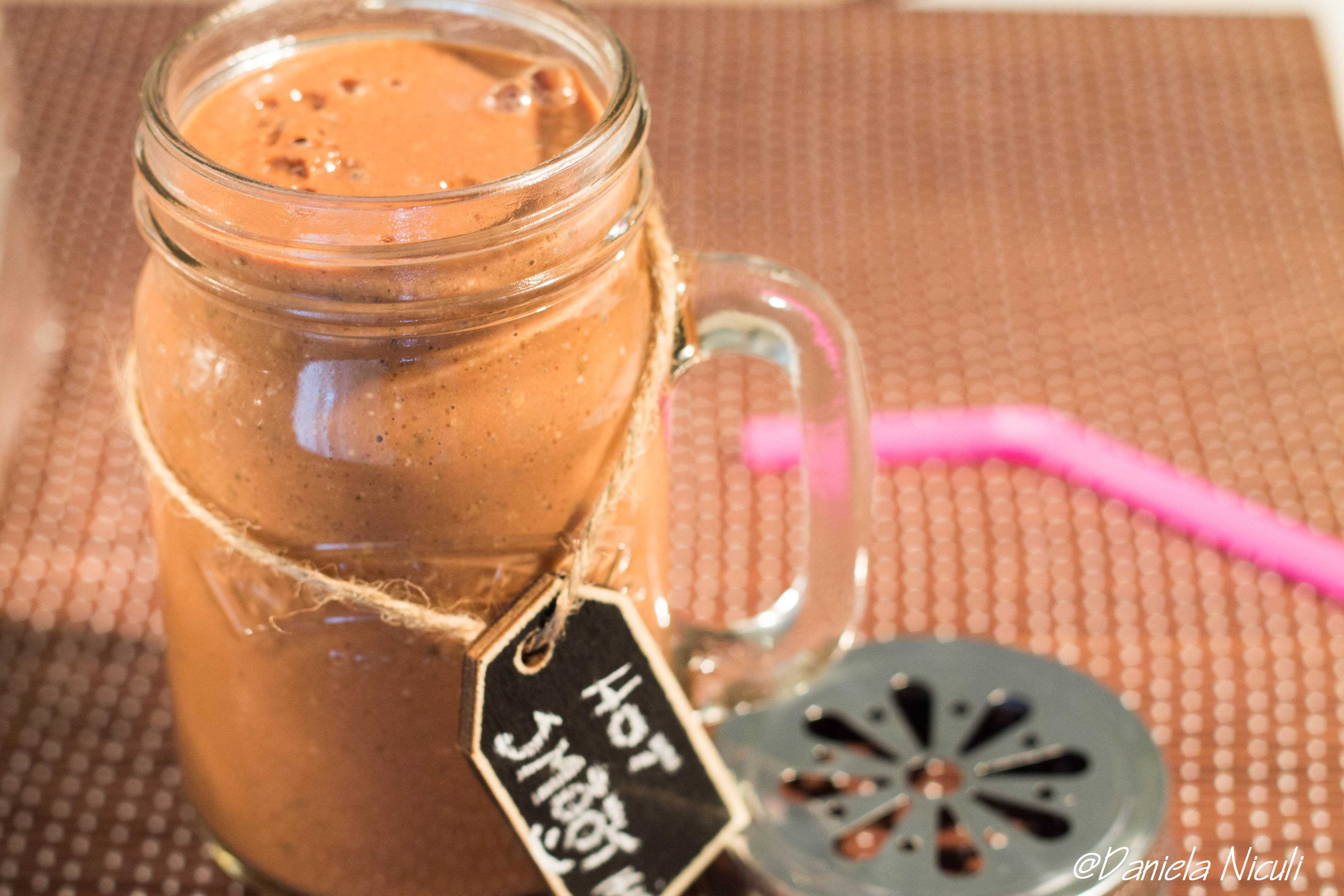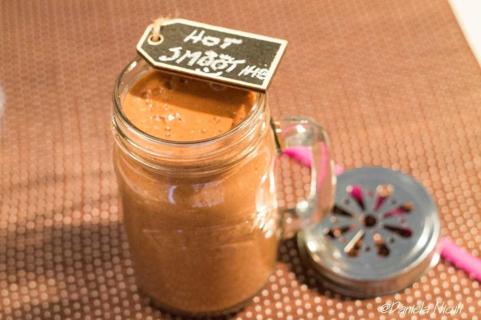 Am obtinut astfel un smoothie cu ciocolata si lapte de cocos, o bautura calda, nutritiva si satioasa, ideala la micul dejun sau ca o gustare intre mese.
