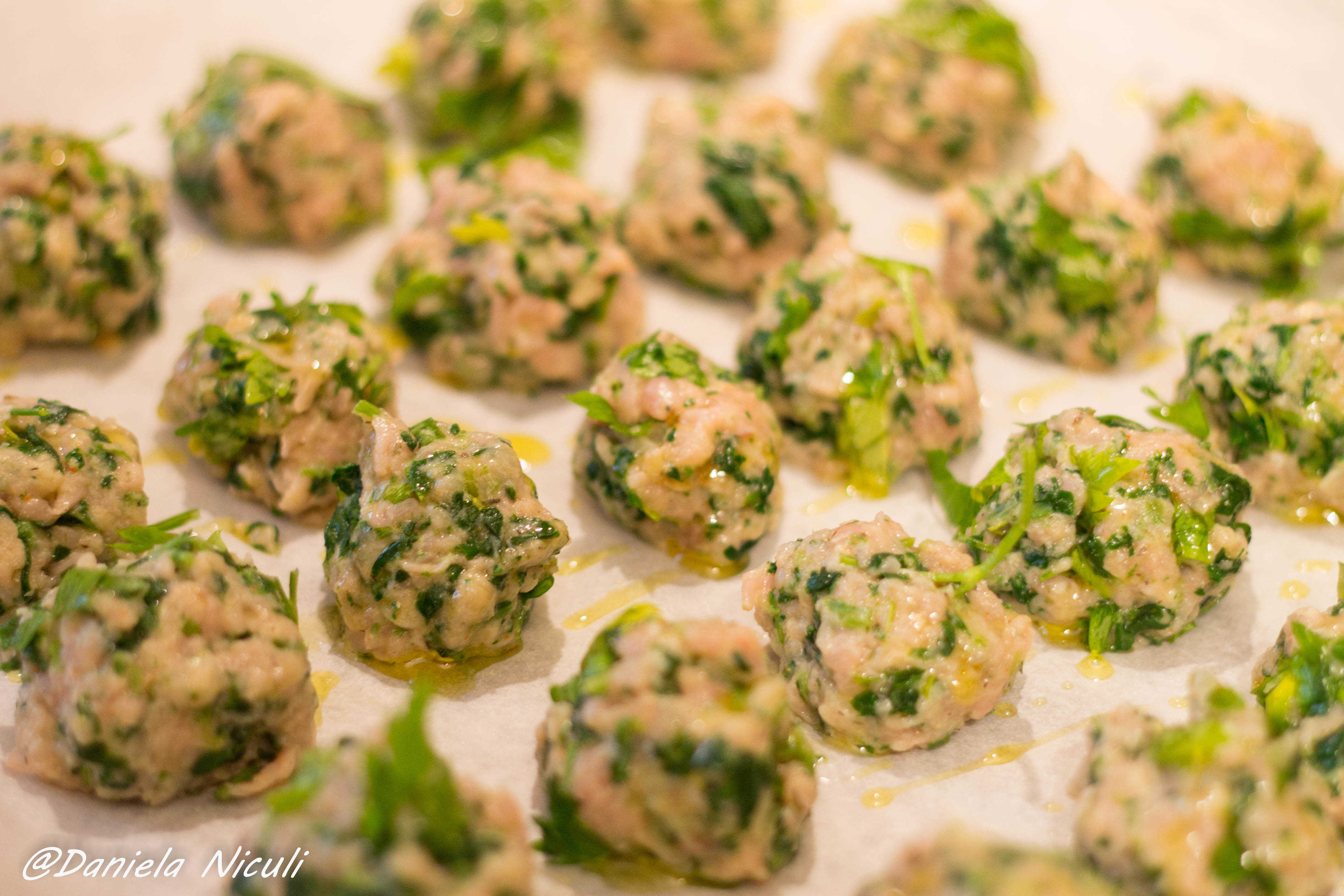 Cu ce merge proteina cel mai bine? Cu o sursa de verdeata, evident :). Asa ca m-am gandit cat de misto ar arata niste bilute de curcan cu o pata de culoare, facute la cuptor. Pentru ca aveam o sursa garantata de carne tocata am trecut la atac.