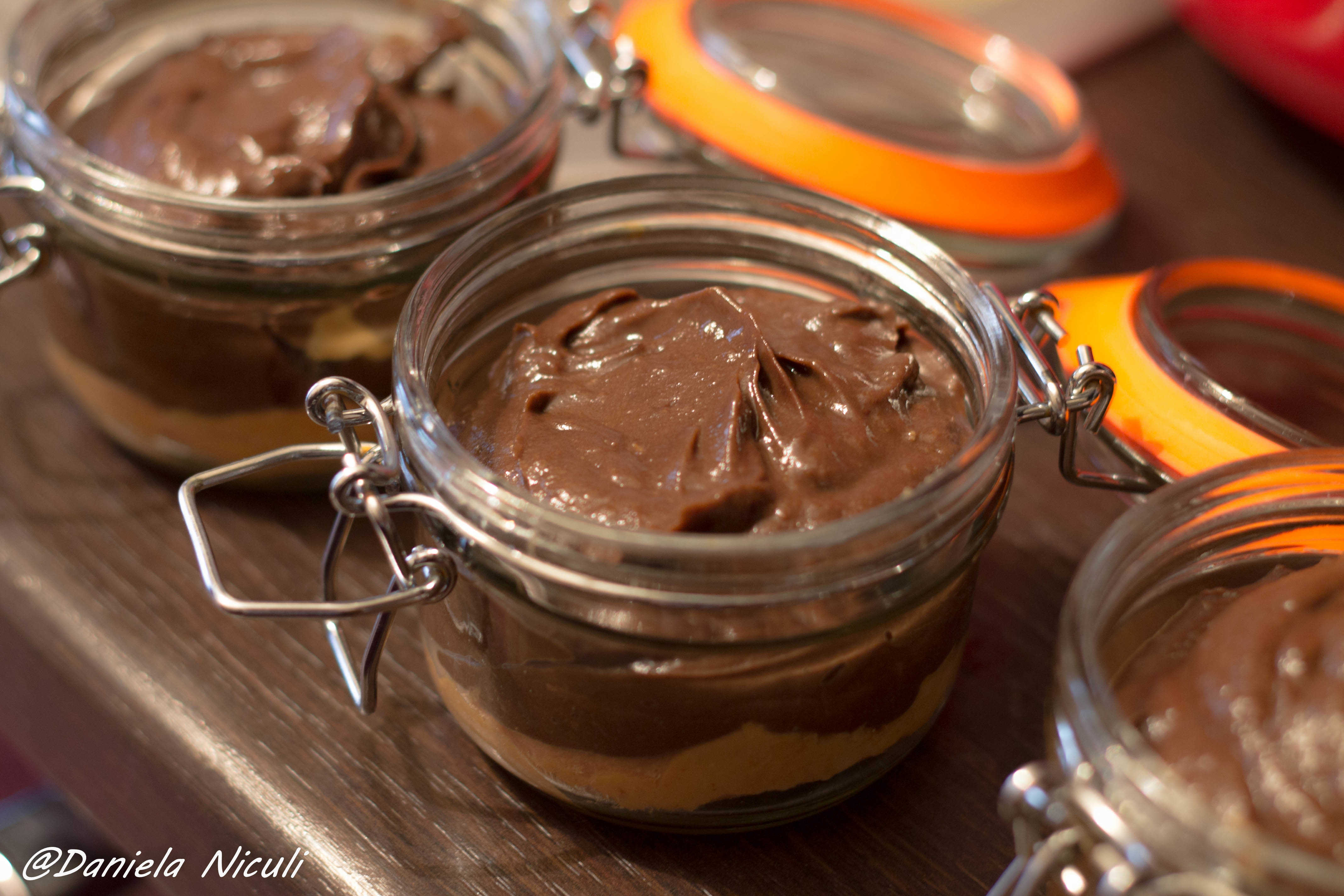 Se mixeaza pana se obtine o consistenta cremoasa! In recipientele in care urmeaza a fi repartizata budinca se adauga cate o lingura de unt de arahide. Se adauga budinca de ciocolata din avocado peste untul de arahide.