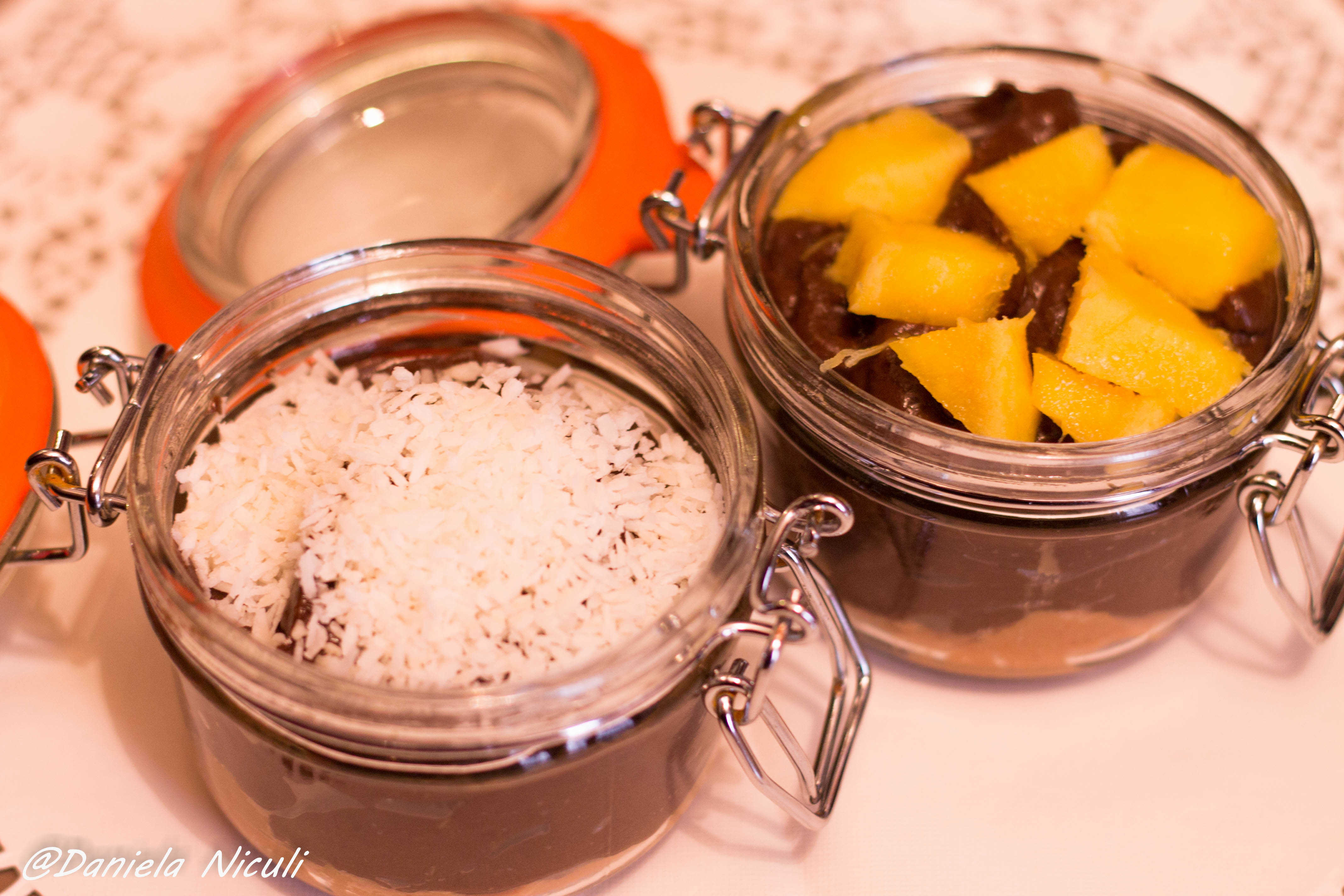 Aceasta budinca am mai prezentat-o aici intr-o varianta in care am servit-o cu ananas proaspat si cacao, insa de aceasta data am ales o prezentare la borcan, combinata cu unt de arahide.