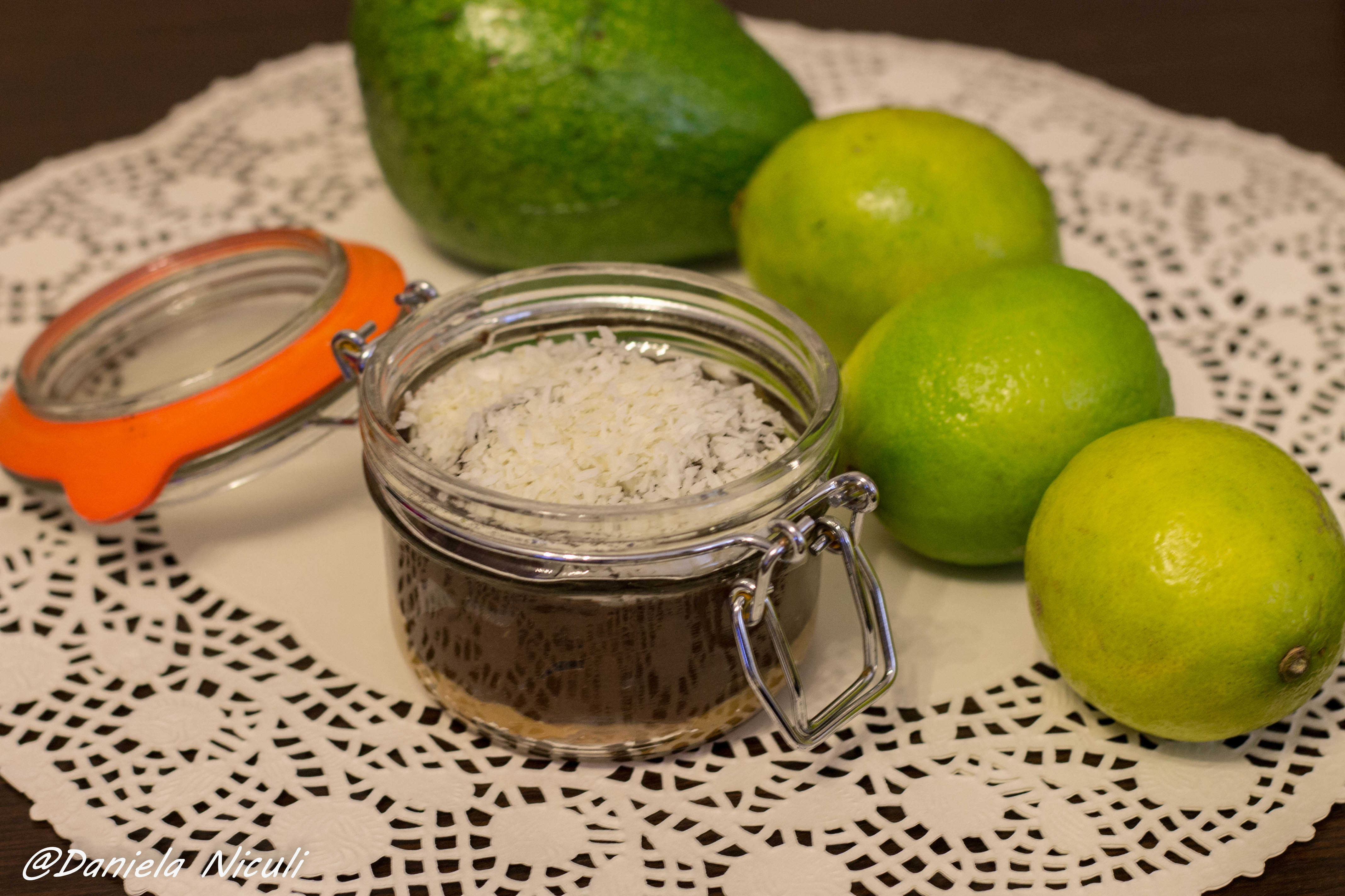 Se curata avocado de coaja si se mixeaza cu blenderul vertical impreuna cu cele 3 linguri de pudra de roscove, sucul de lime si mierea de albine.