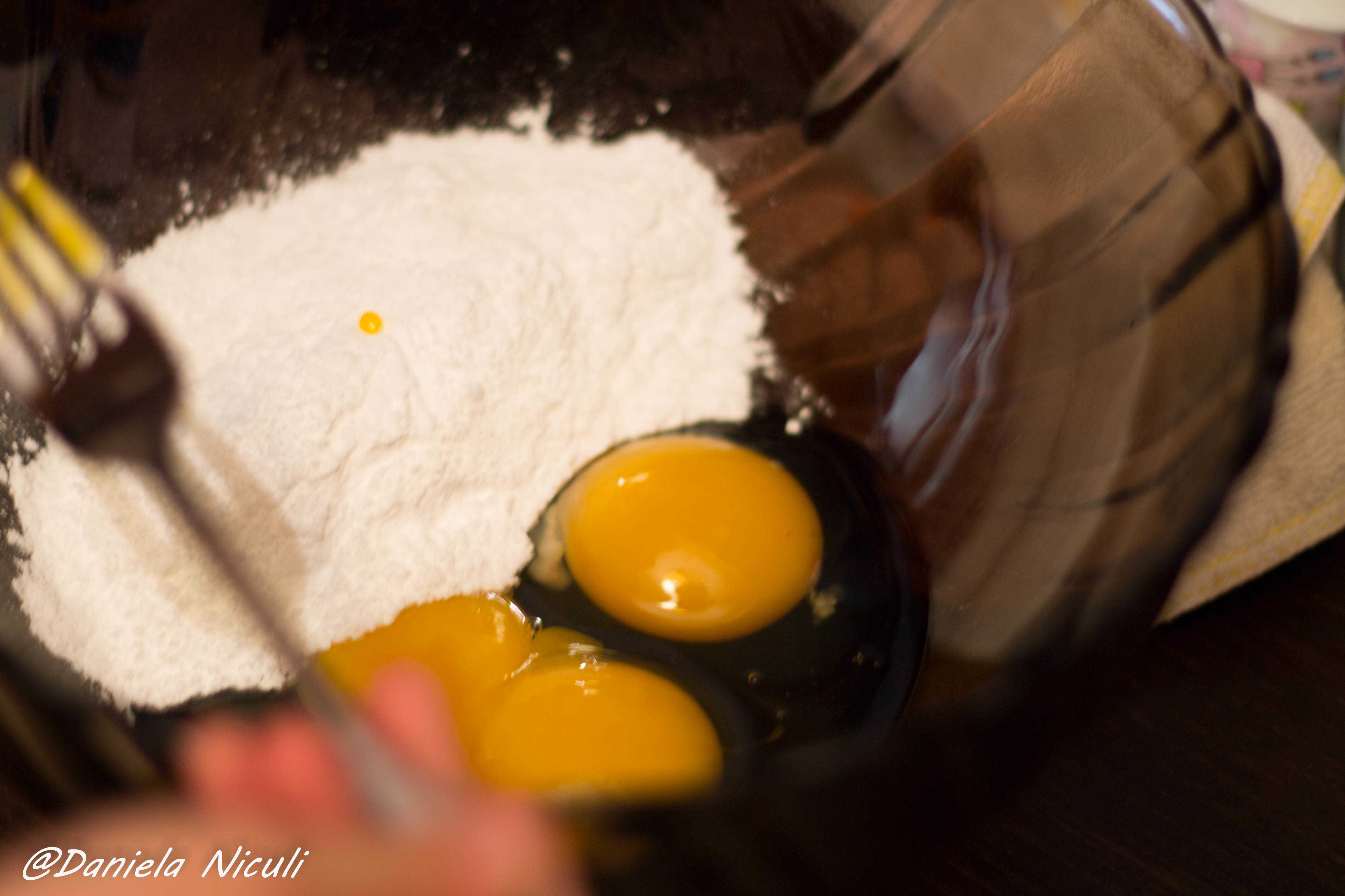 Din cele 4 oua, folositi doua oua intregi, iar de la celelalte doar galbenusurile. Se mixeaza ouale impreuna cu zaharul.
