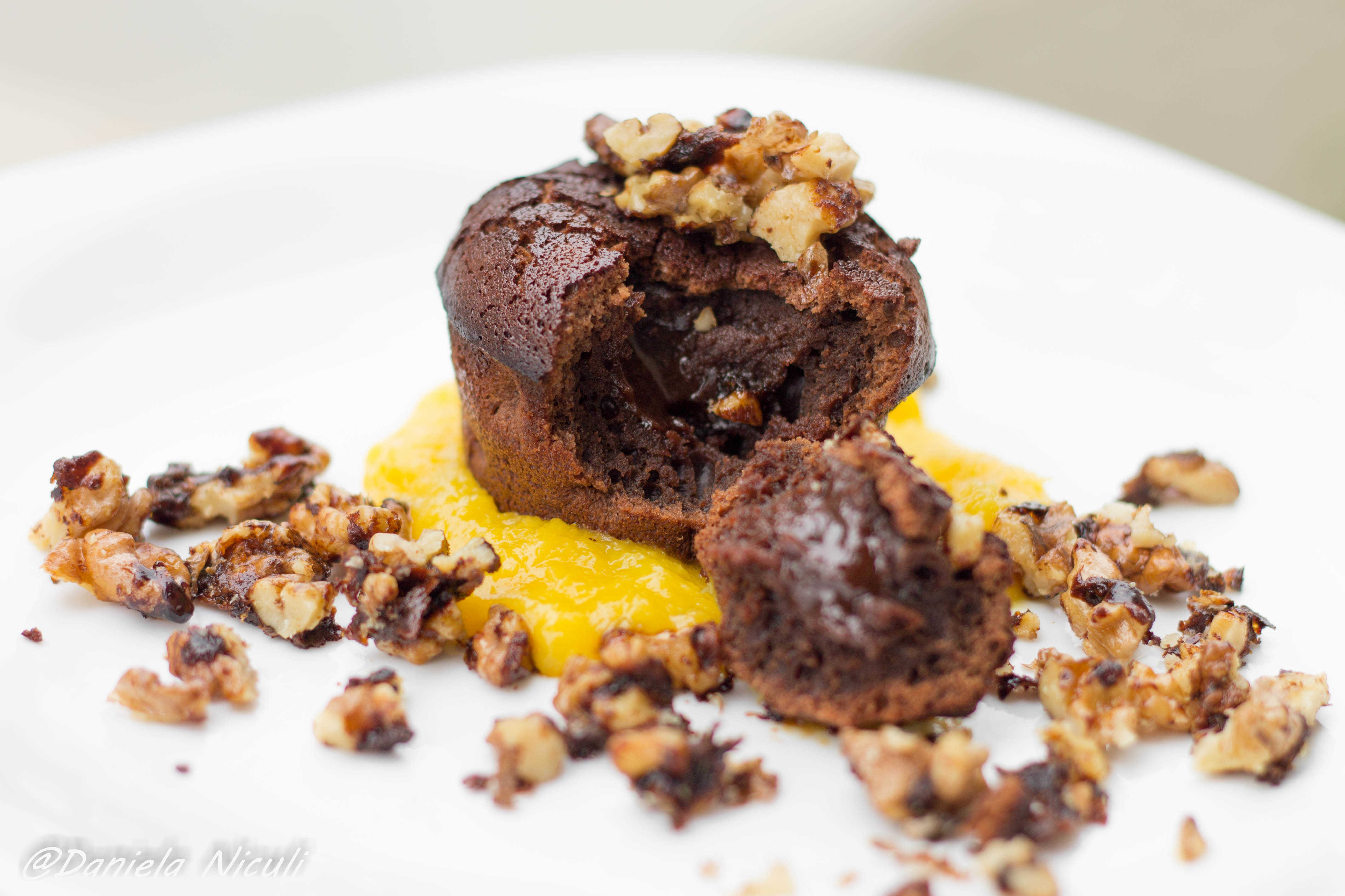 Puneti pe farfurie piure de mango, lava cake si nucile caramelizate! Daca nu e de ajuns, adaugati si o cupa de inghetata de vanilie 🙂