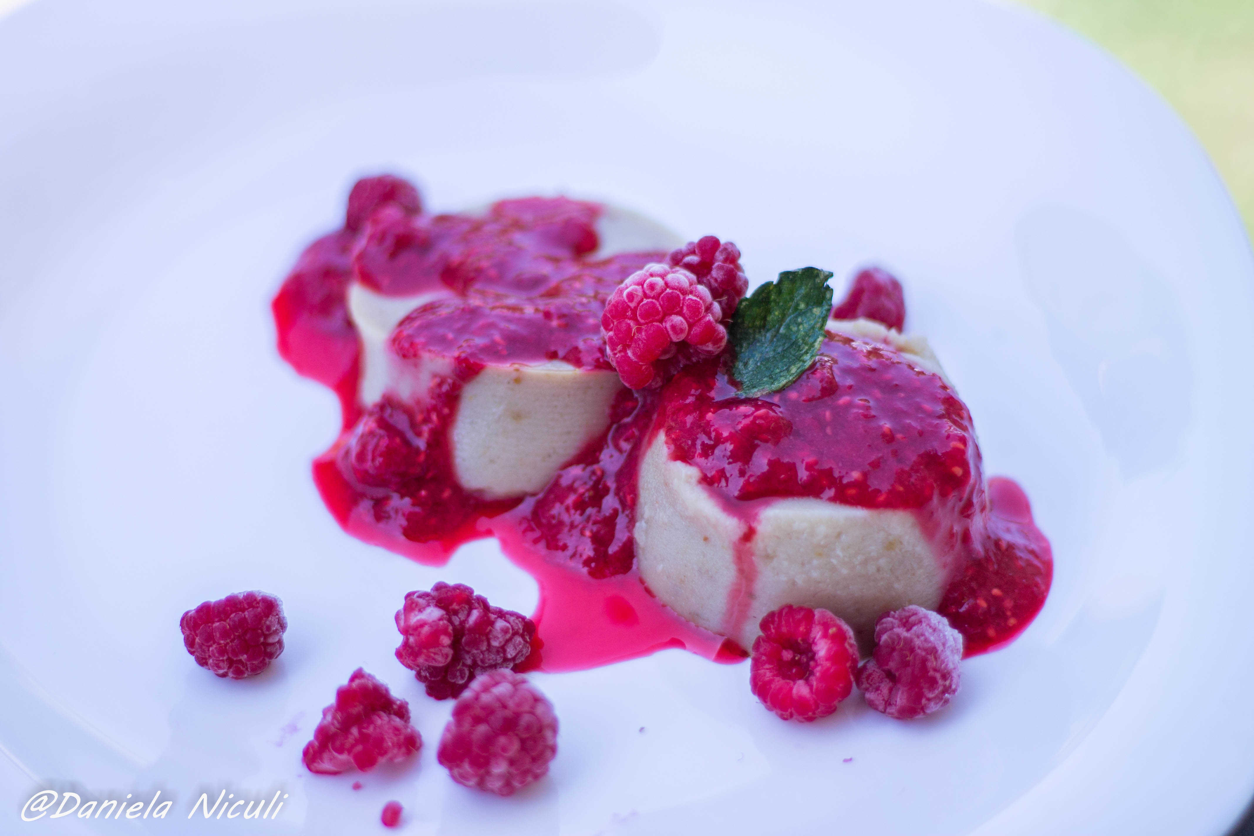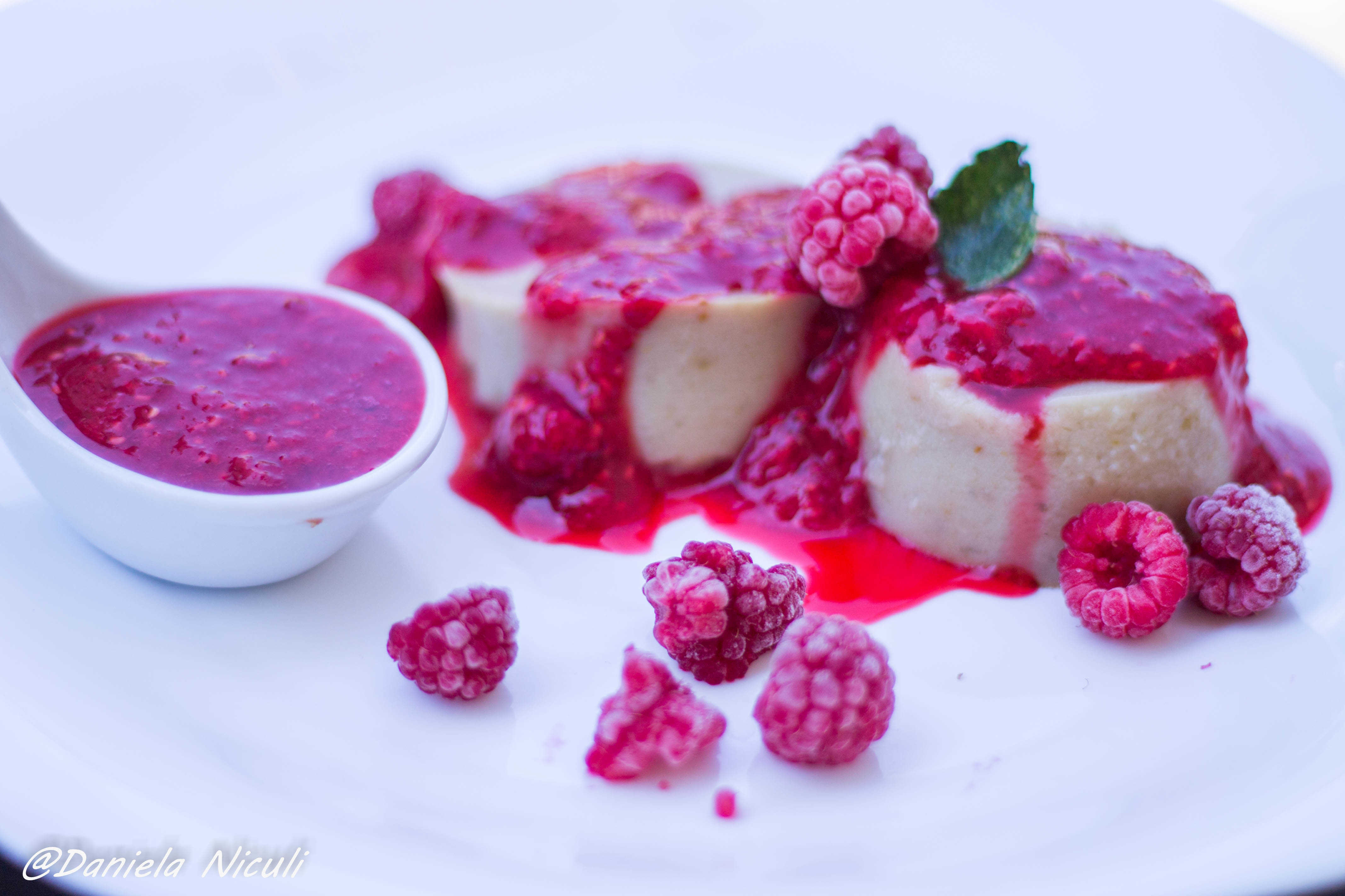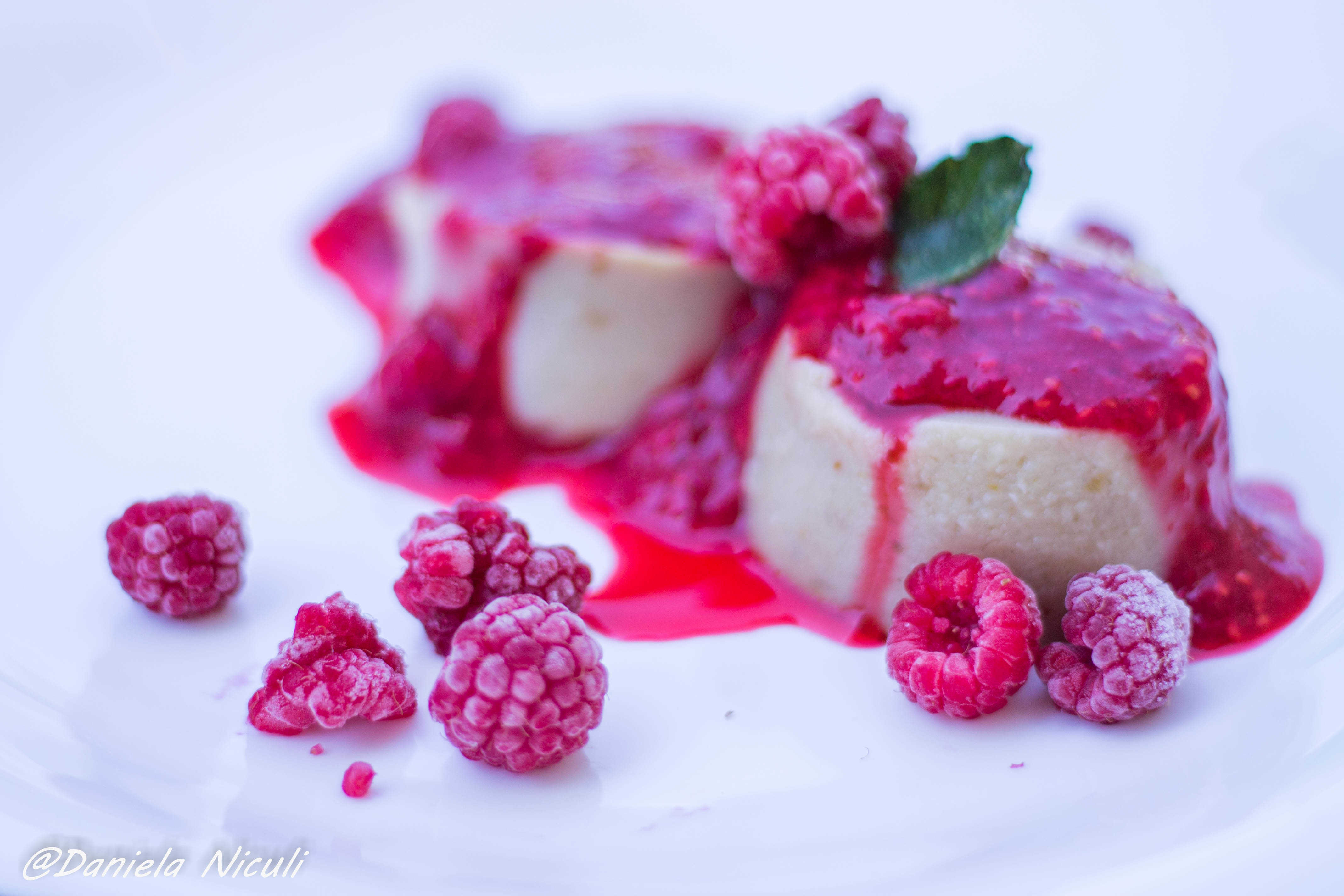 Din compozitie am turnat in forma de silicon pentru briose, dar am folosit si pahare inalte. Le-am dat la rece pentru 3-4 ore si am servit cu piure de zmeura. Am avut 6 portii din forme si 3 pahare inalte. Compozitia din forme s-a inchegat mult mai bine, in pahare a avut o consistenta mai moale.