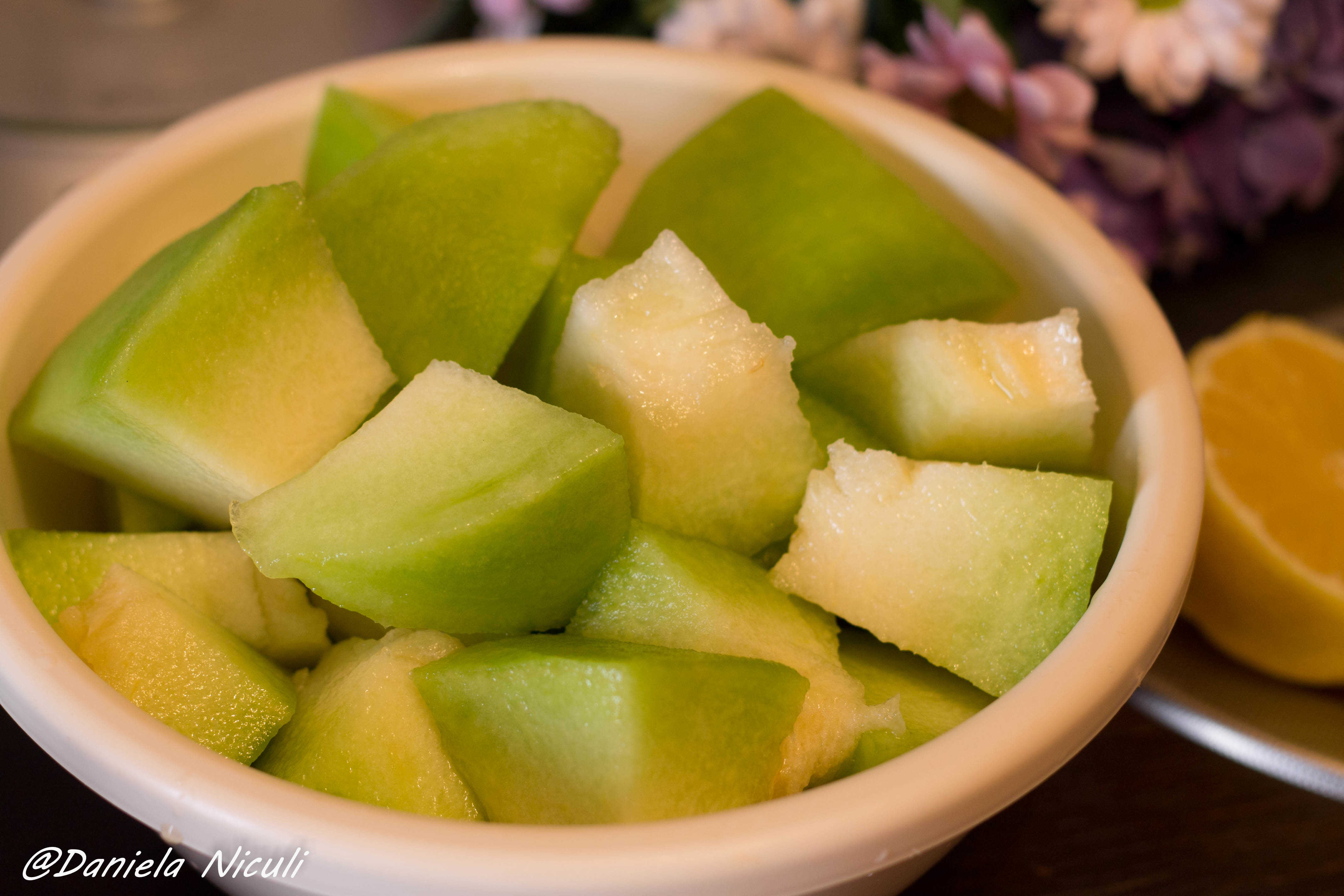 Aveam un pepene galben mare si parfumat, iar prin frumusetea lui parca cerea sa fie tratat ca atare, asa ca l-am imprietenit cu cateva ingrediente la fel de gustoase si a iesit un deliciu.