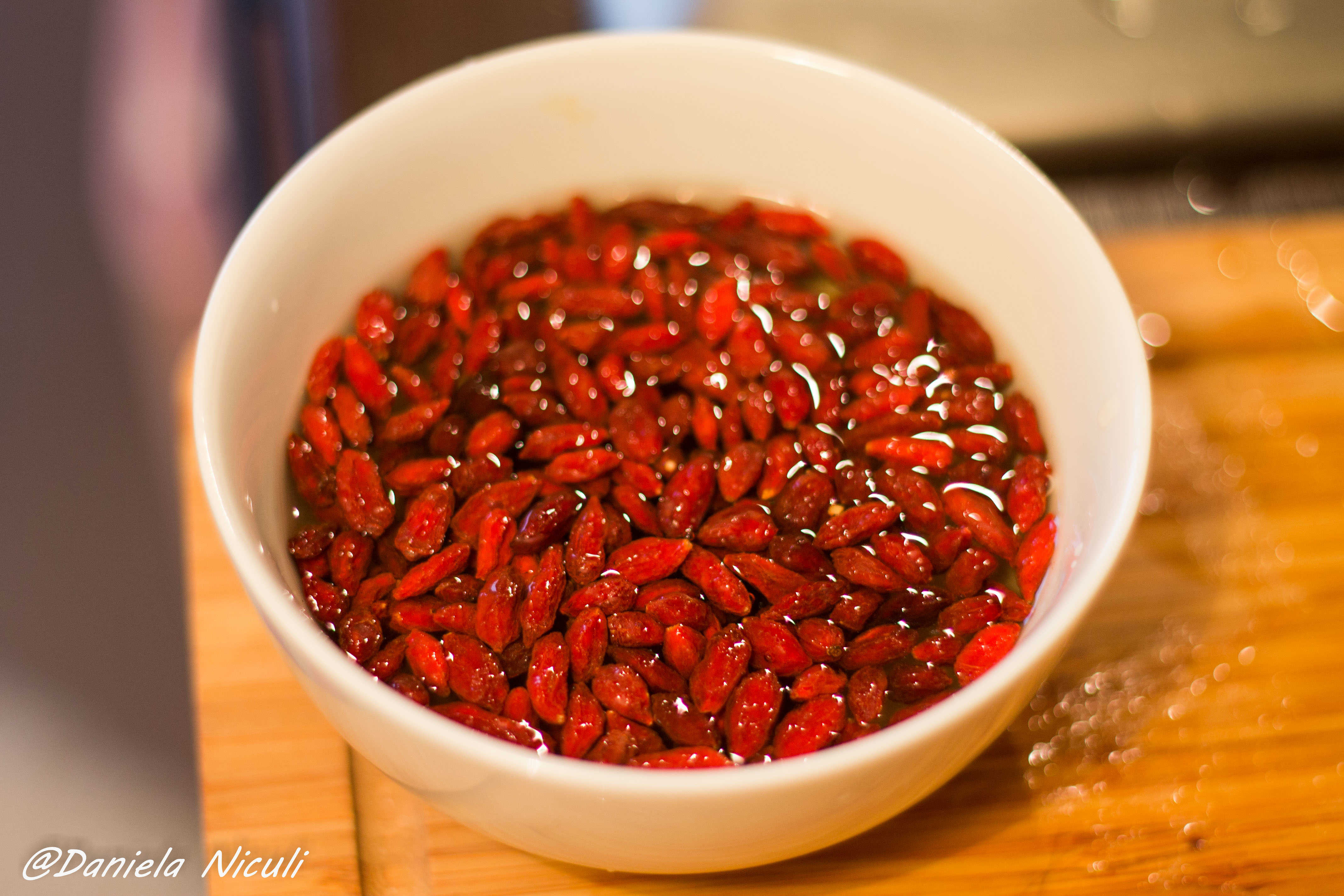 Pasul 1. Punem fructele goji la inmuiat intr-o cantitate de apa atat cat sa le acopere.
