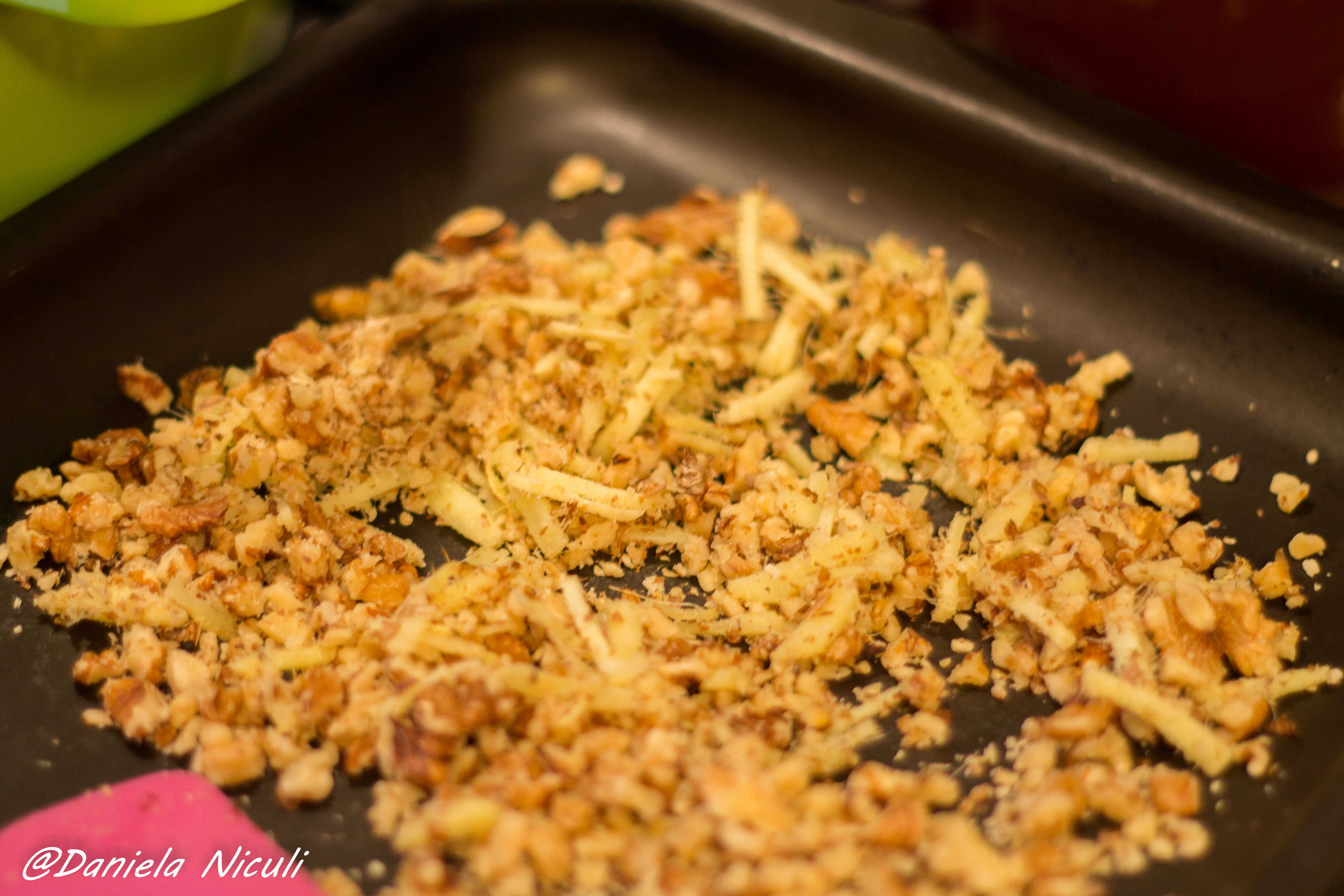 Pasul 5. Intr-o tigaie puneti bucata de unt la topit si adaugati ghimbirul impreuna cu nuca. Lasati la foc mic pentru 3-4 minute.
