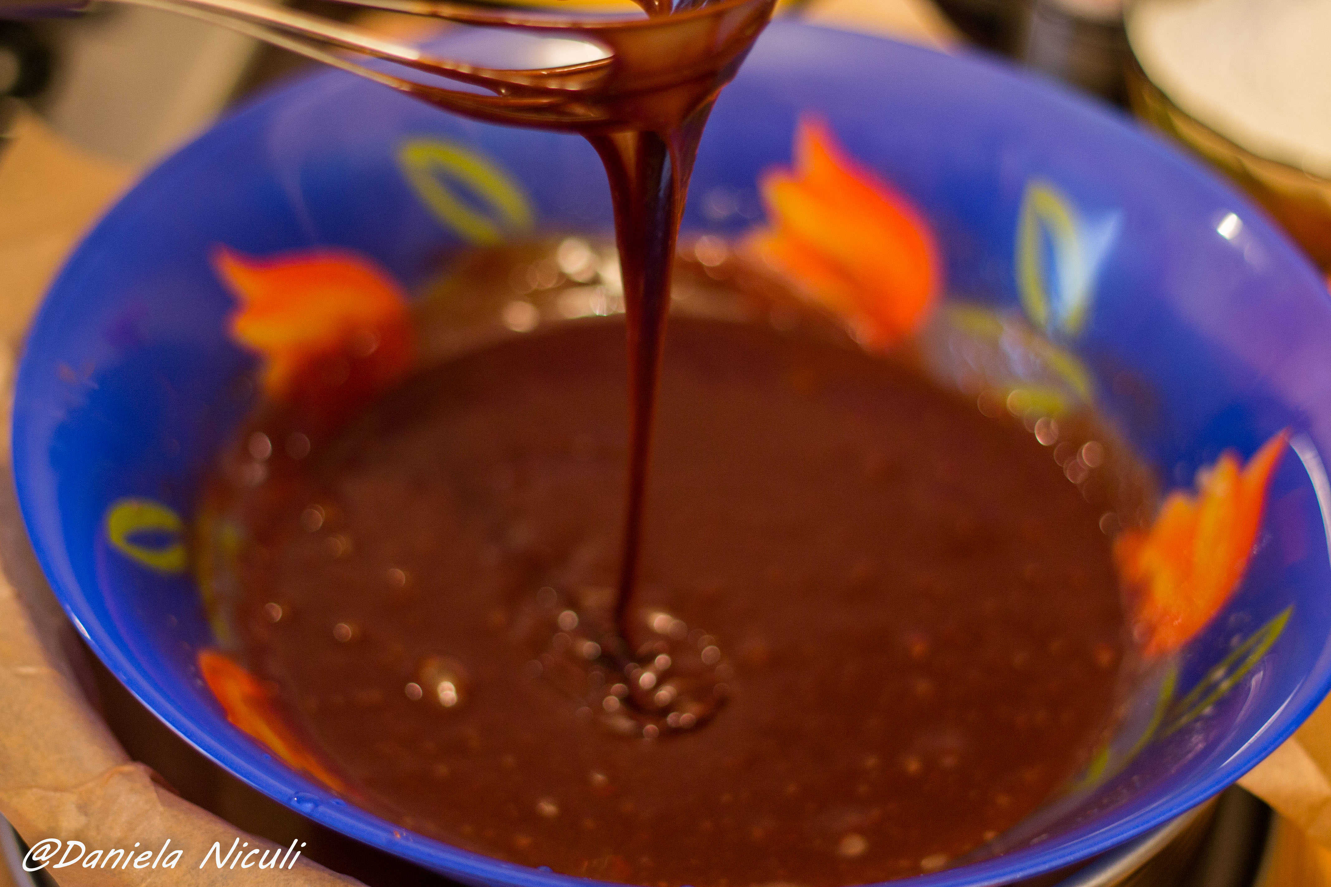 Intre aceste operatiuni, va sugerez sa dati drumul cuptorului la 180 de grade, pentru a asigura confortul necesar si temperatura optima, vorbim totusi de un brownie 🙂