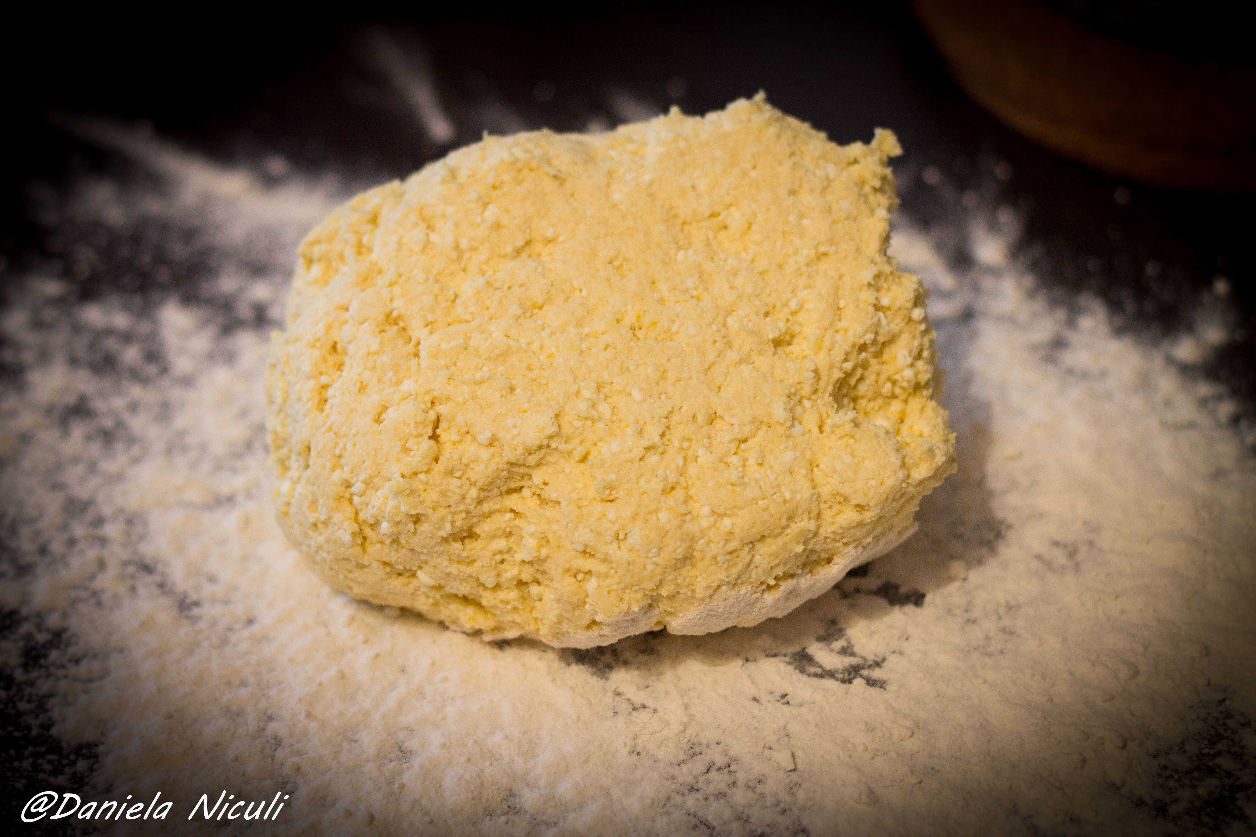 Nu uitati sa presarati faina pe blatul unde lucrati, oricum va mai cere si compozitia 1-2 linguri in plus.