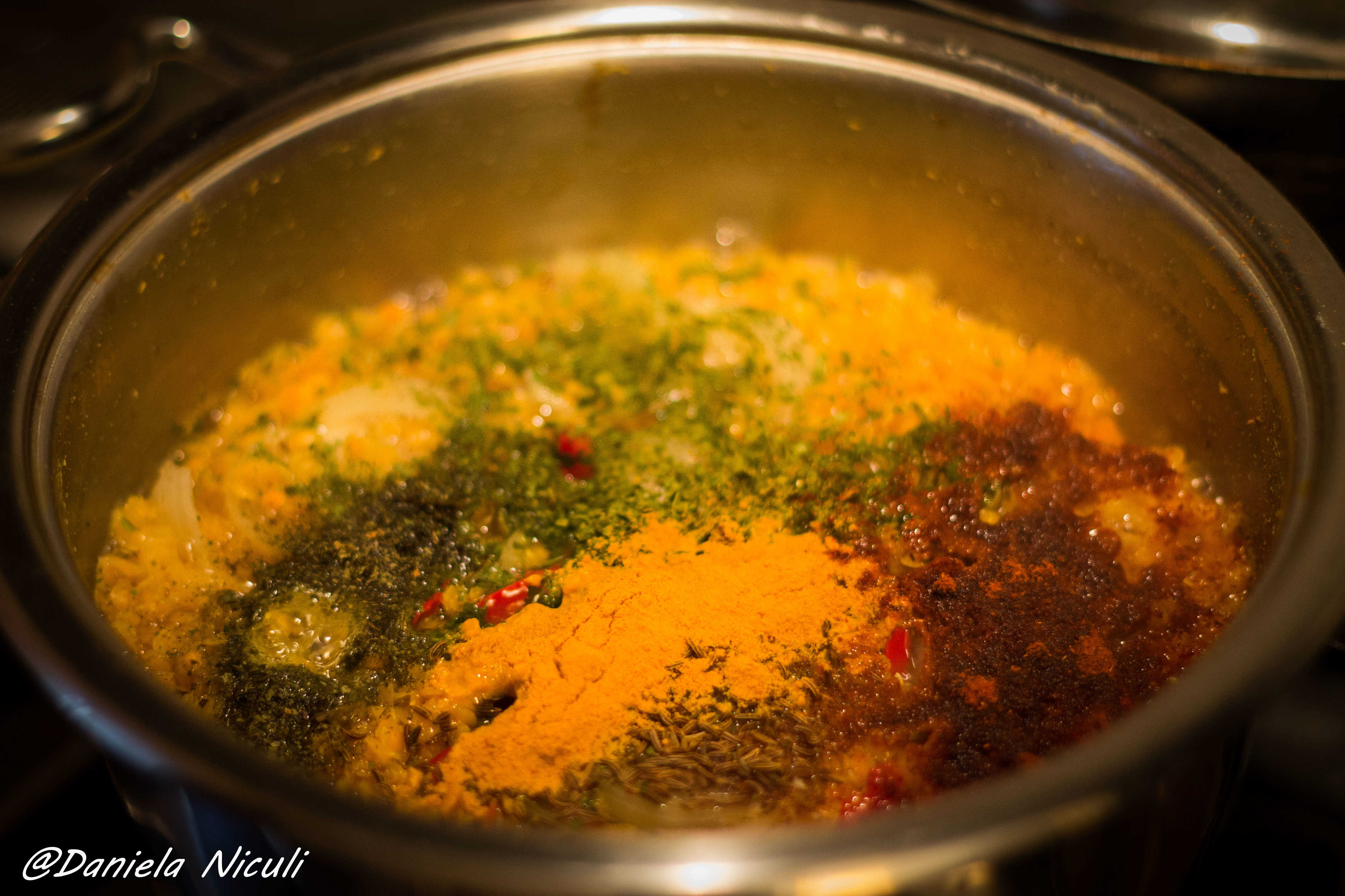 Reusesc sa il dau pe spate cand ii spun ca am pus in supa : turmeric, garam masala, scortisoara, oregano, boia sau piper cayenne. Sunt cuvintele cheie, aproape ca lintea nici nu mai conteaza in aceasta ecuatie, pentru ca l-am hipnotizat deja cu explozia de culoare si arome.