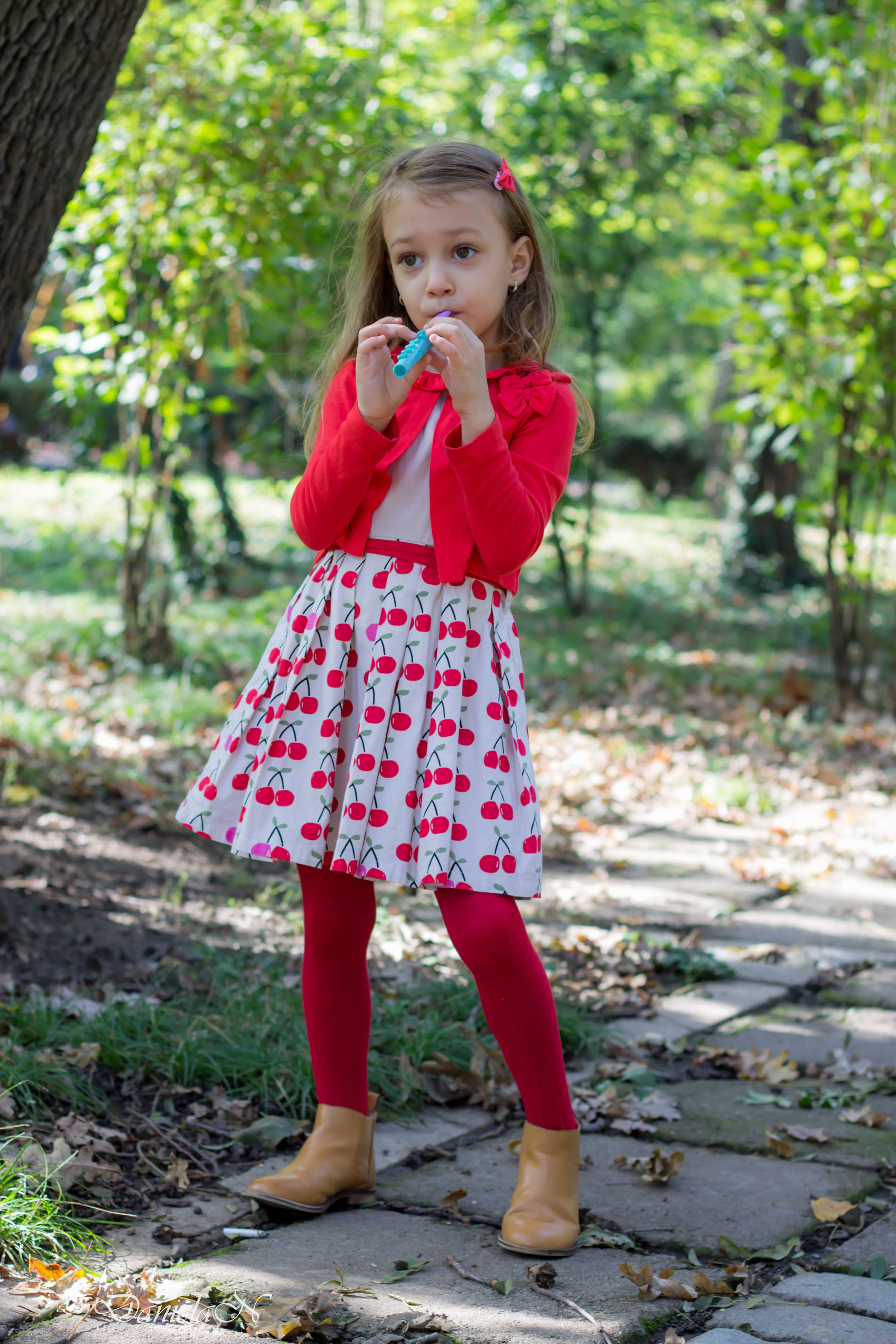 Alexia a facut o pasiune pentru rochita cu cirese, astfel incat, combinate toate piesele vestimentare cu atentie, poate fi purtata si in zilele de toamna.
