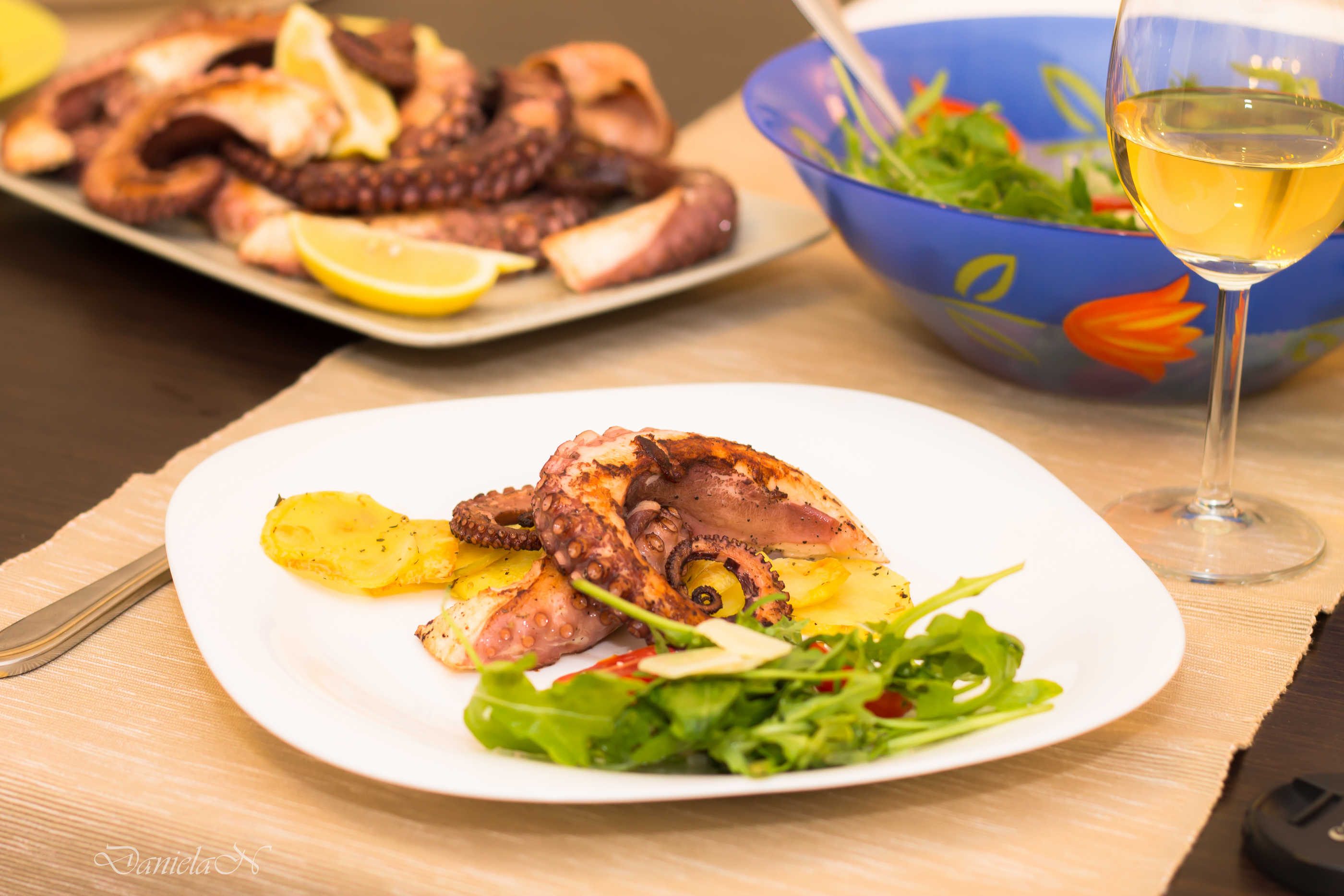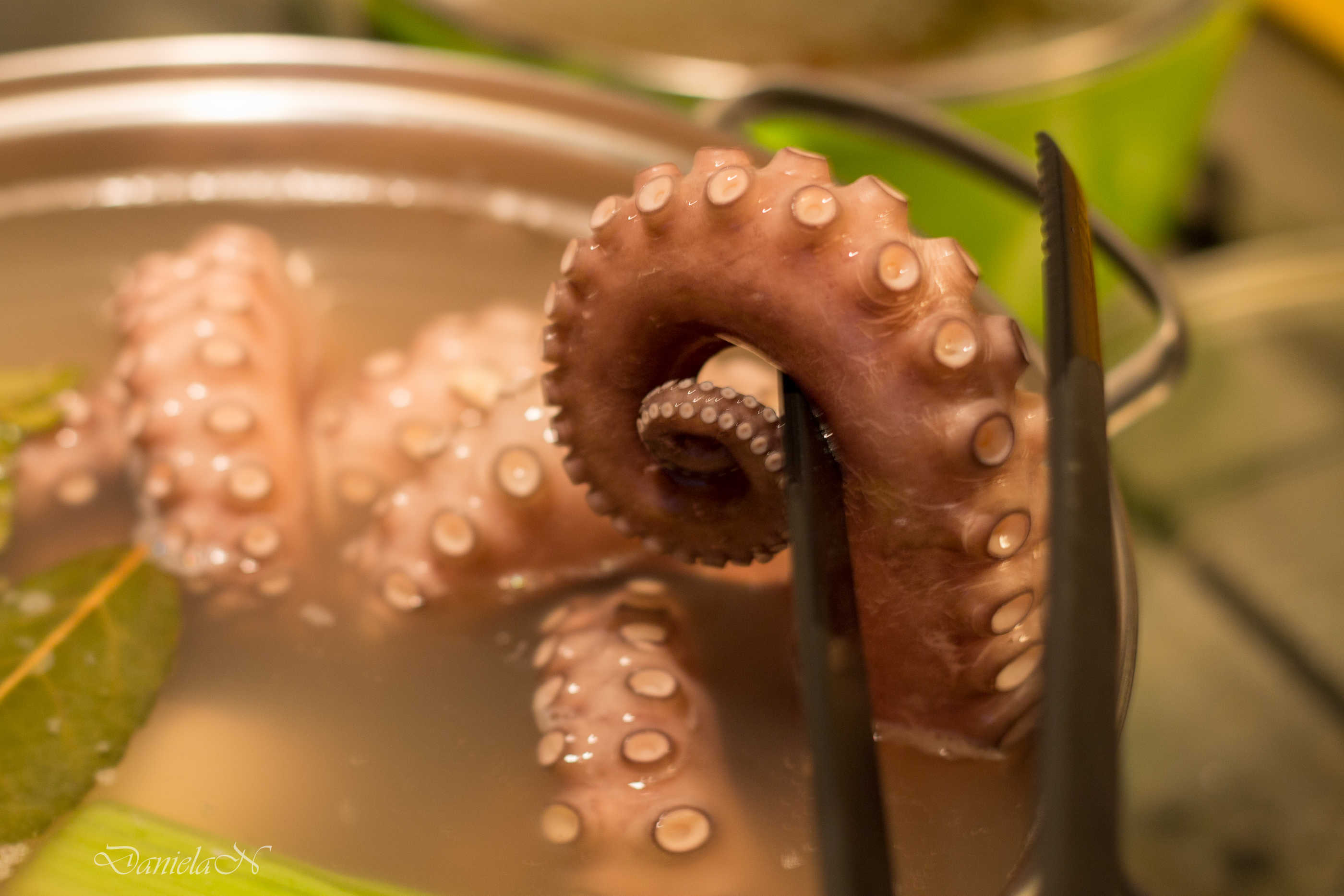 Pentru aceasta cina as dori sa precizez ca s-a muncit in familie, 80 % din treaba fiind facuta in stil ingineresc, incepand de la documentarea cu privire la curatarea caracatitei pana la timpul de fierbere.