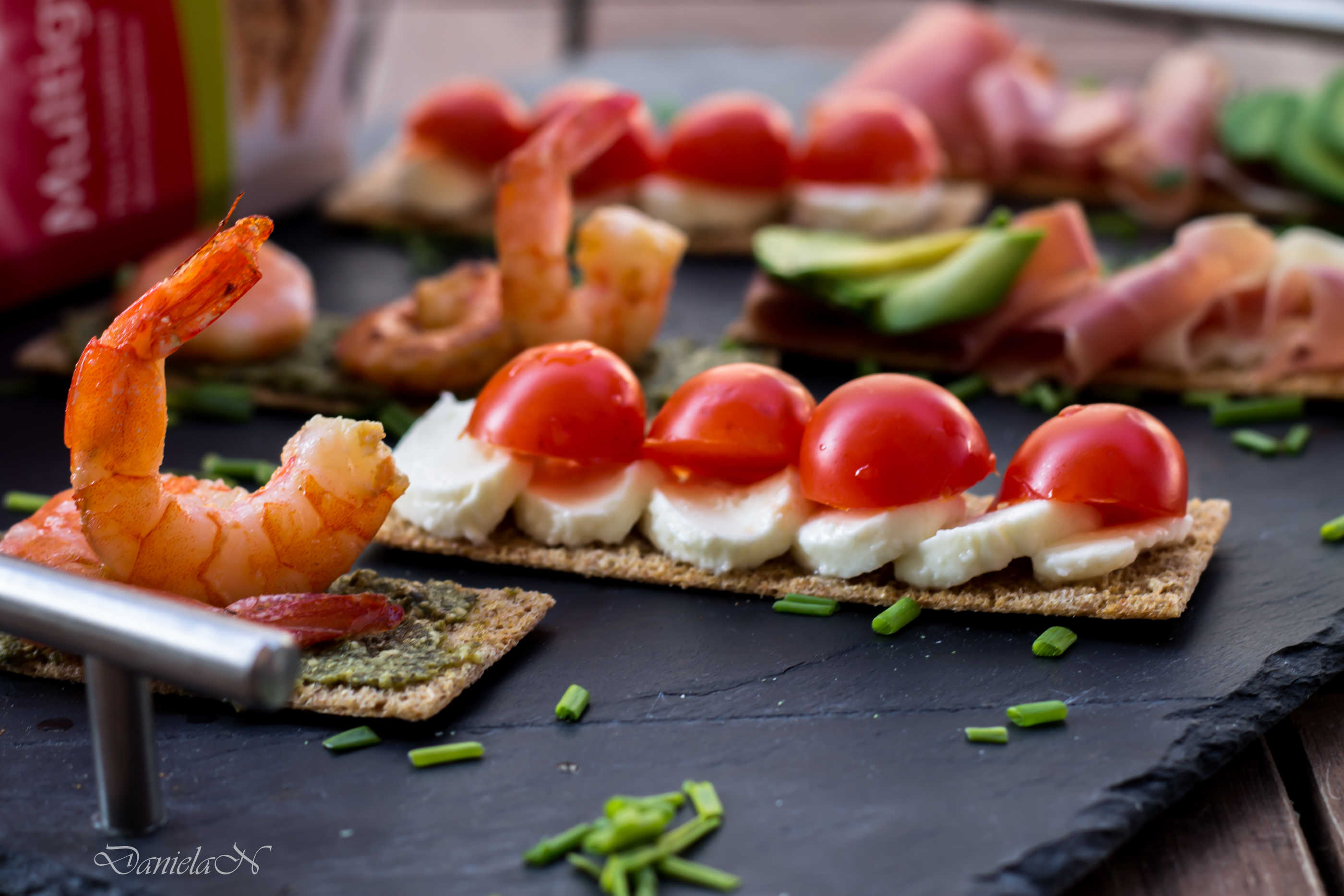 Imi place sa pregatesc aperitive din cele mai colorate si mai gustoase, incercand sa evit painea in exces pe cat de mult posibil. Din pacate majoritatea aperitivelor cu impact au la baza painea prajita si atunci ma opresc la 1 maxim 2 variante de bruschete.