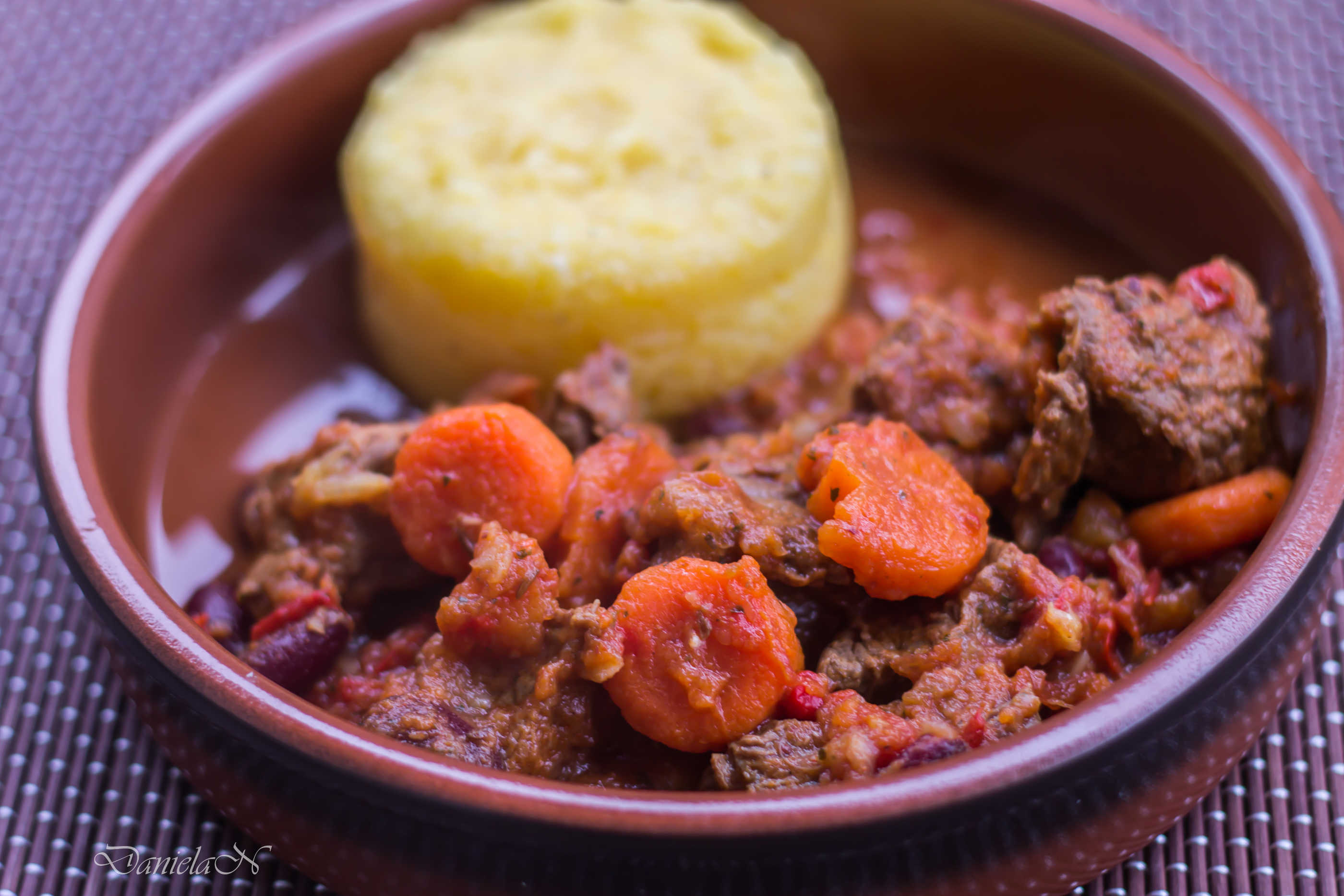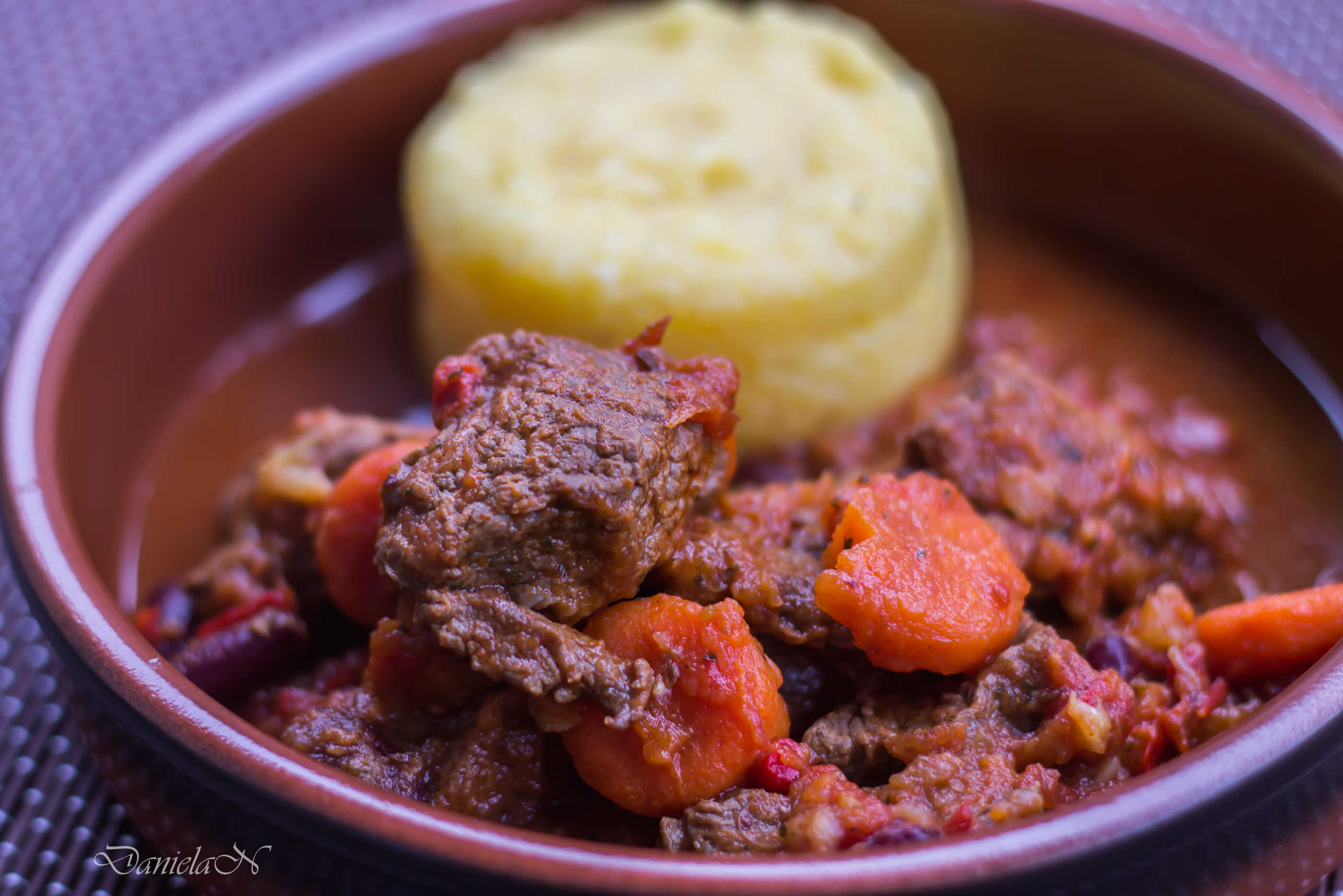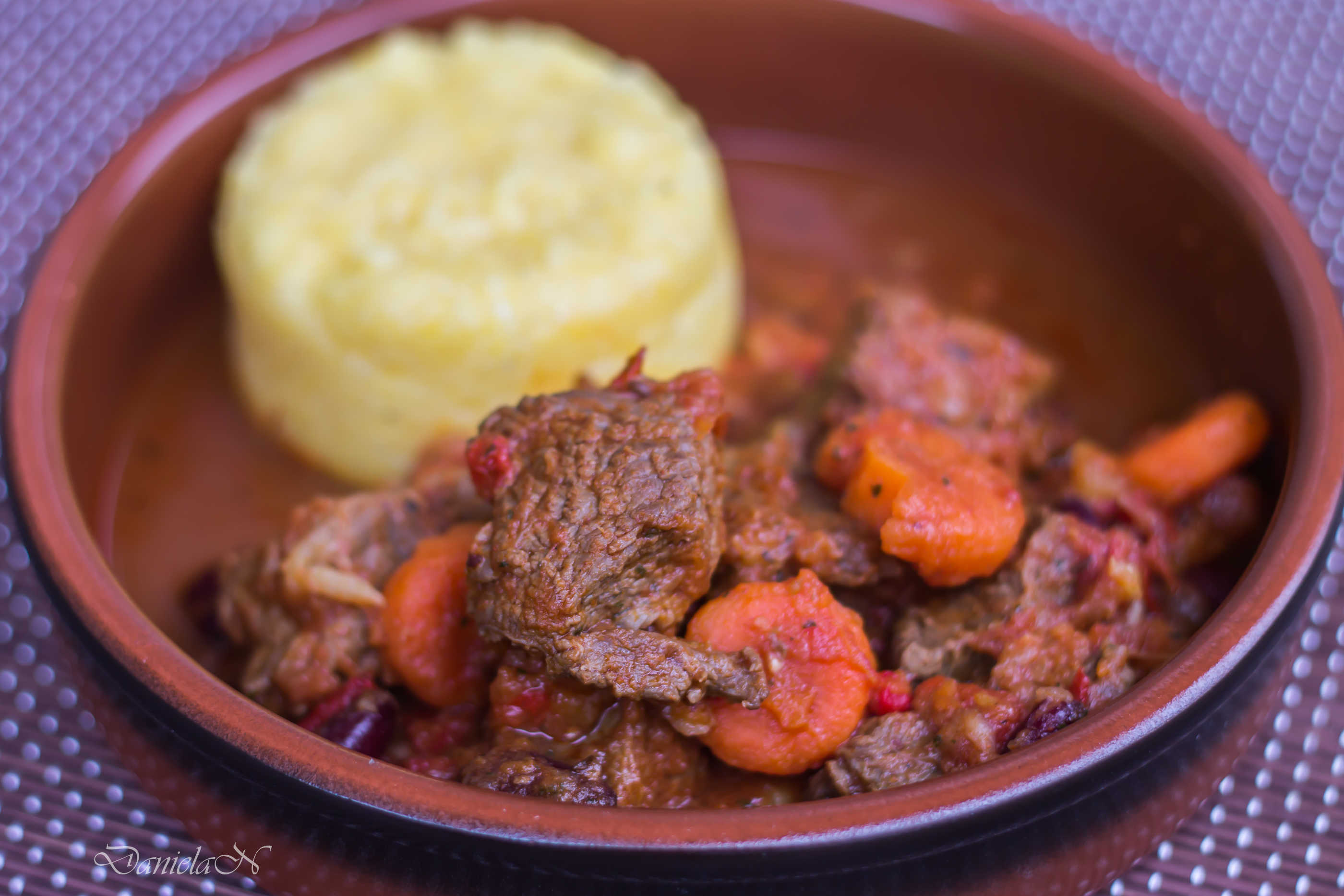 Lasam focul la mic, acoperim oala din nou si mentinem preparatul pe foc pentru 1 ora si jumatate- 1 ora si 45 de minute. Carnea pe care am folosit-o eu, mi s-a parut ca mai are nevoie de minute in plus pentru a se patrunde.