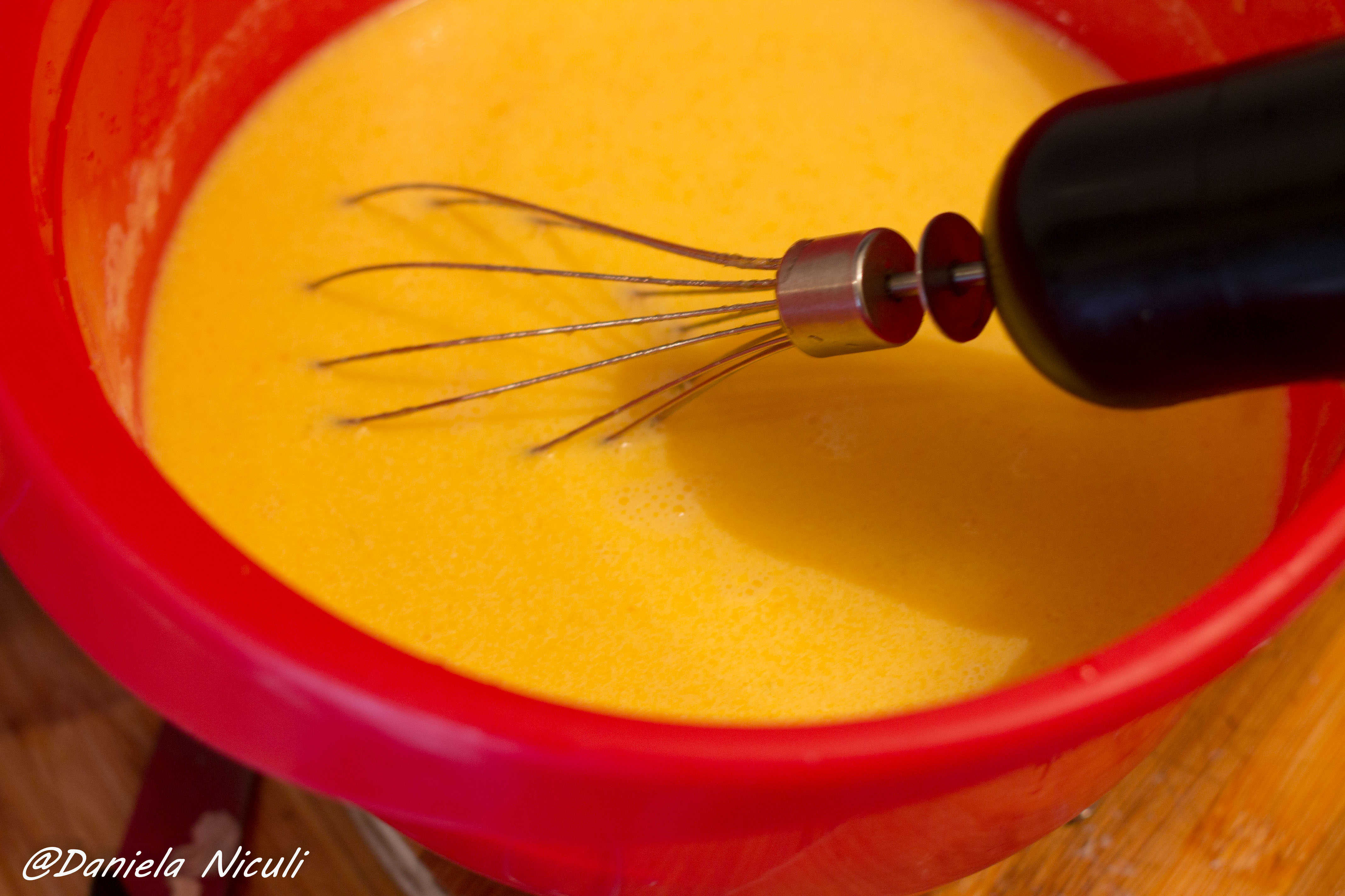 Separam albusurile de galbenusuri, iar acestea din urma le amestecam bine cu smantana lichida.