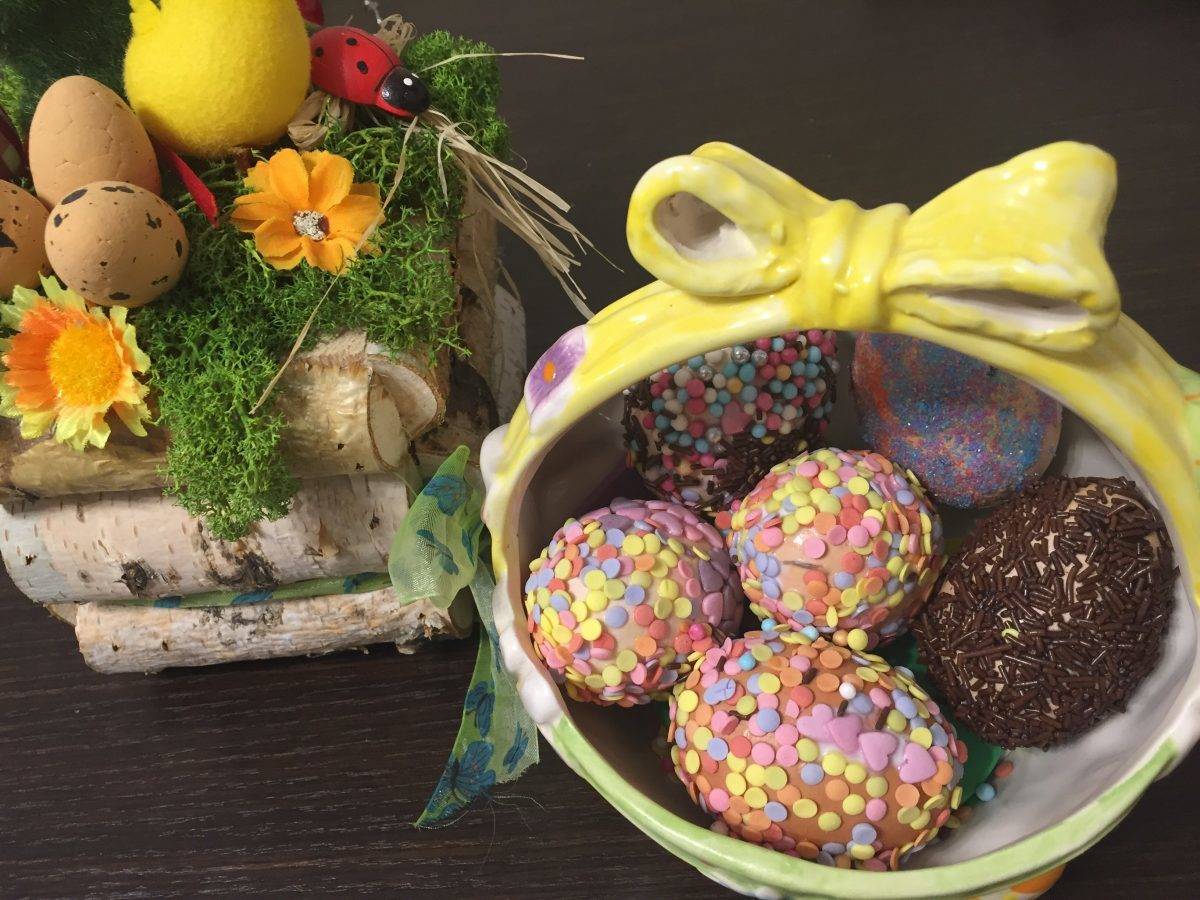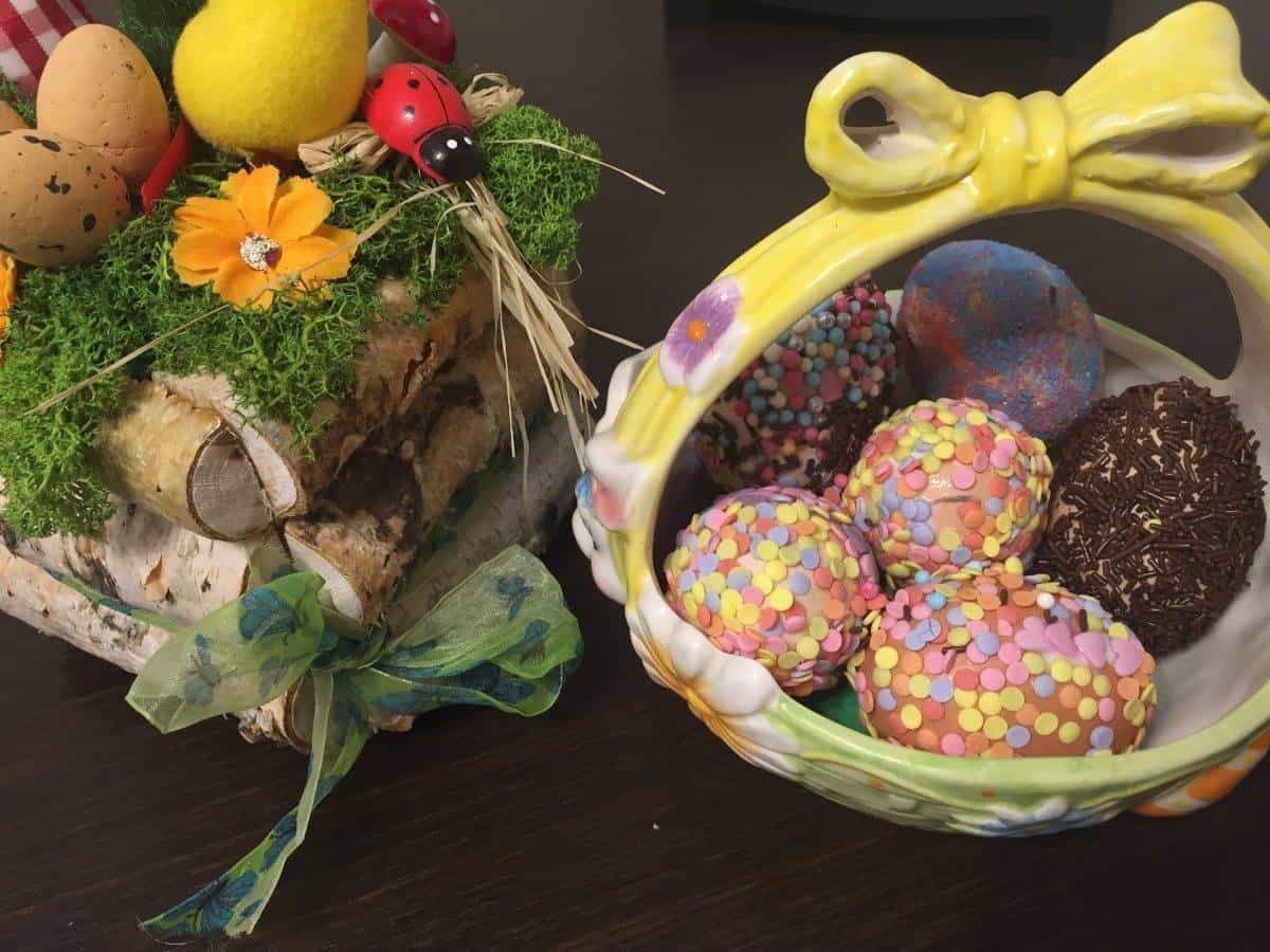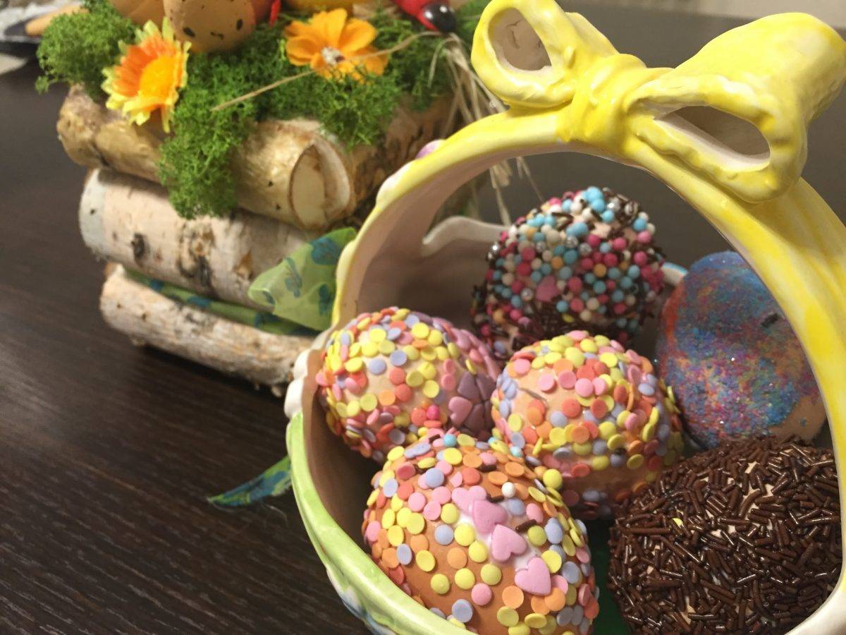 Noi ne-am distrat în familie și am decorat ouă de această dată, le-am decorat cu chestii dulci și colorate, le-am aranjat frumos într-un coșuleț și arată ca un aranjament atipic ce va înveseli cu siguranță masa de Paști.