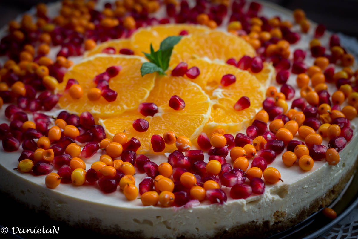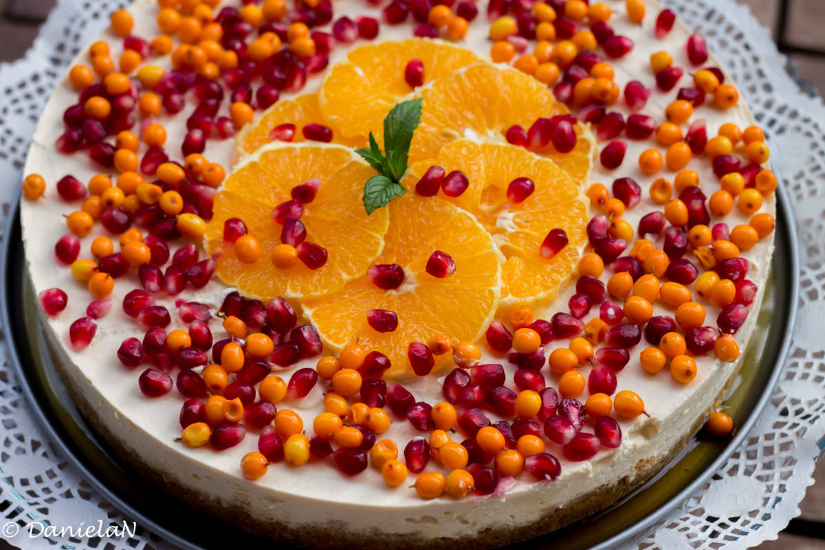 Înainte de a fi servit, se decorează cu felii de portocale și rodie.