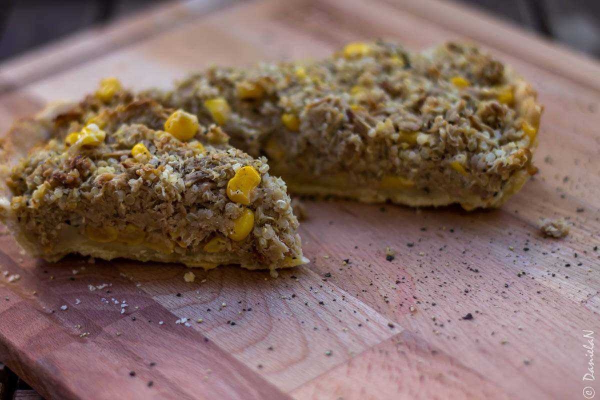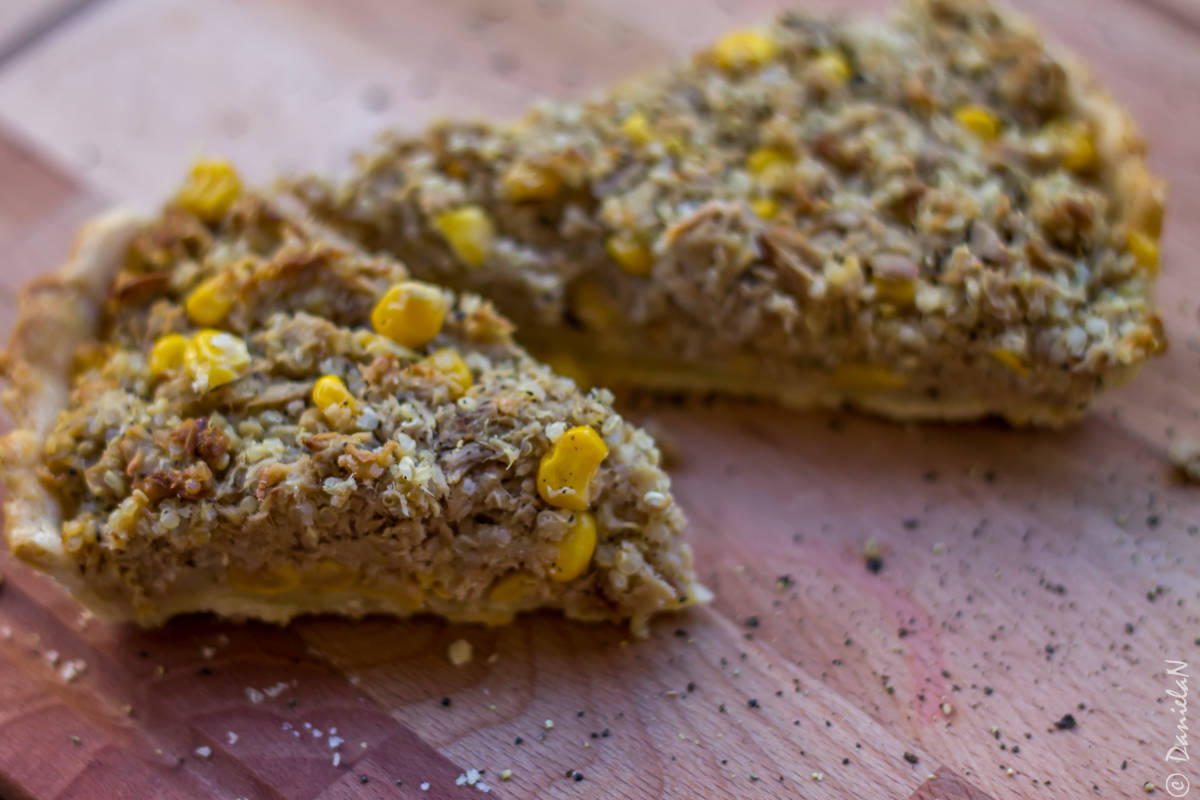 La început au fost brioșele cu ton și quinoa, fără gluten, de la care am continuat către tarta din imagine, folosind aproximativ aceleași ingrediente.