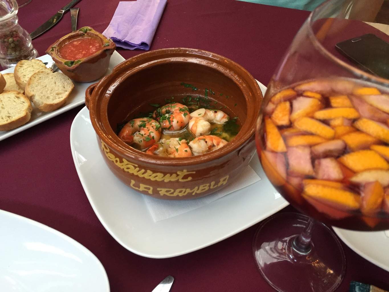 Au o rețetă de gambas cu usturoi și chilly pe care am testat-o și pe care o recomand cu drag dacă ajungeți la Rambla. Este și una din rețetele pe care o pregătesc cel mai des la mesele cu prietenii și care este foarte apreciată de toată lumea. Ai de mine, cum e sosul, nu te poți abține!