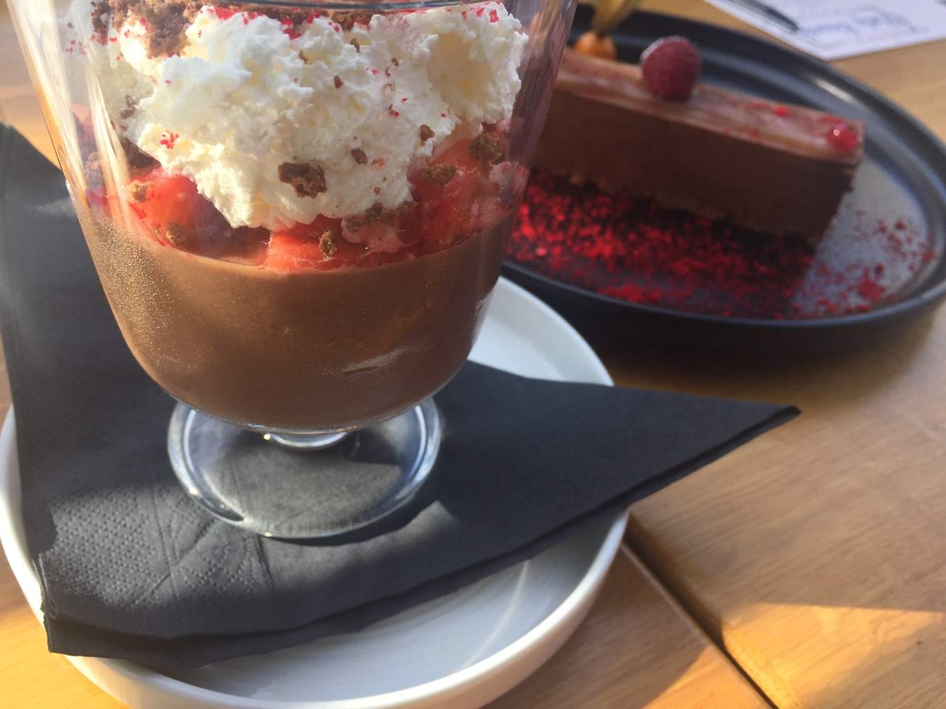 Crema de fistic cu sorbet de zmeură este categoric alegerea care mi-a câștigat votul, (nefiind mare amatoare de dulciuri, tocmai din cauza faptului că sunt mult prea dulci) gustul acrișor al sorbetului combinat cu crema de fistic și fructe proaspete este foarte interesant, iar ca și cantitate, lejer poate fi impățit cu persoana iubită.