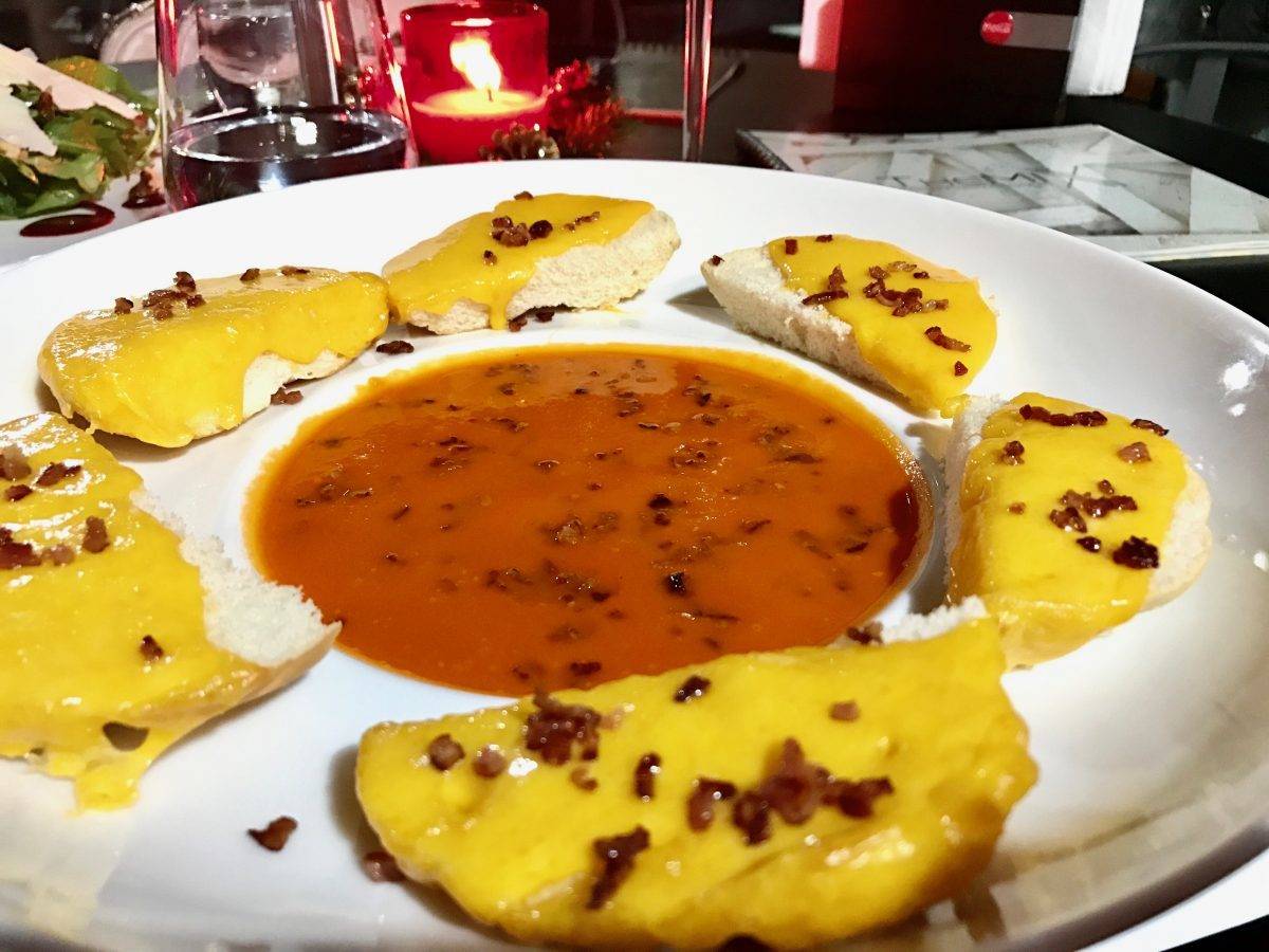 Mulțumită că am găsit mai mult decât îmi imaginam, m-am gândit să completez și prânzul pentru că am dat cu ochii de o supă cremă de roșii cu ardei copt care arăta prea bine, astfel încât am schimbat puțin ordinea dorințelor și am introdus între vinul roșu și vita elegantă, o supă colorată.