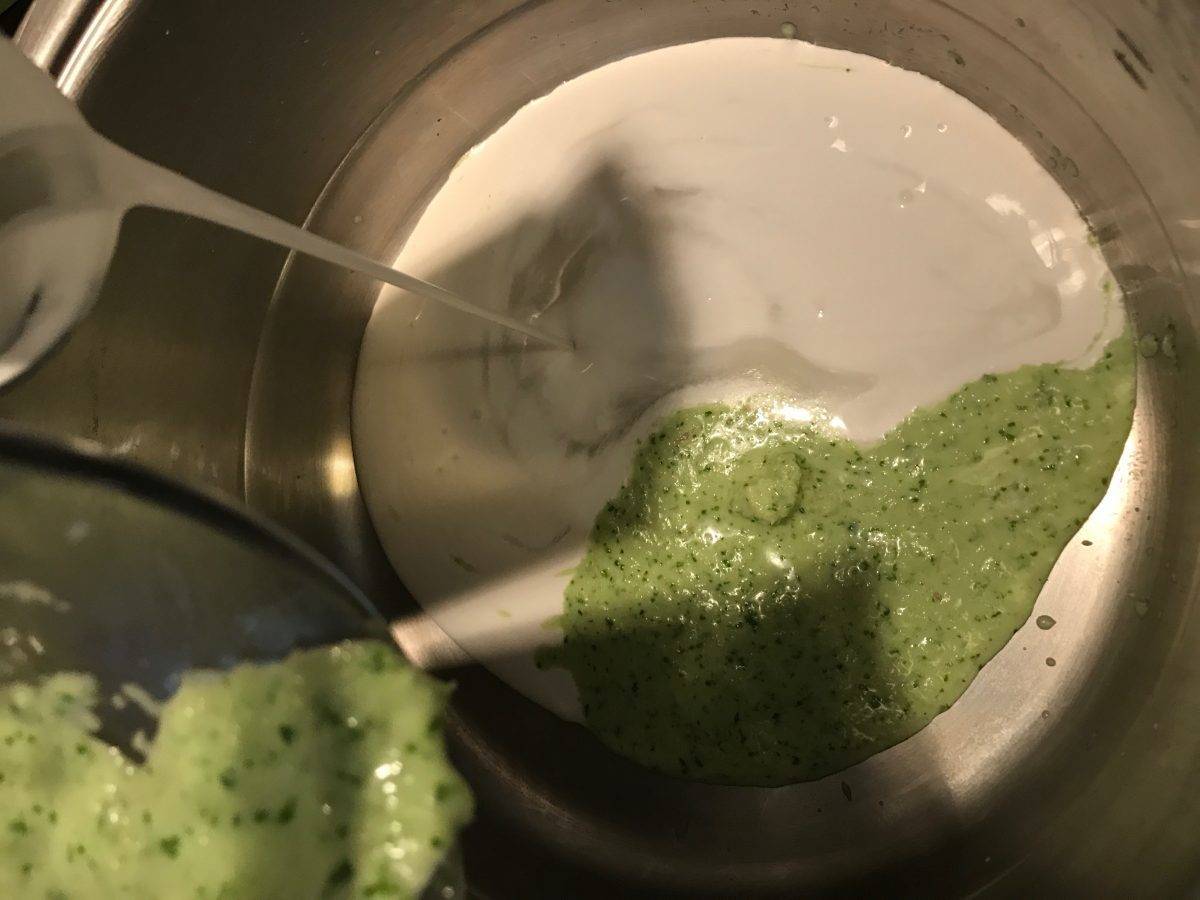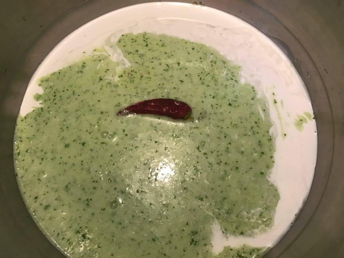 Într-un vas Zepter am adăugat pasta obținută pe care am combinat-o cu laptele de cocos, supa de pește și ardeiul iute roșu, pe care am preferat să îl las întreg și l-am scos la finalul timpului de gătire.