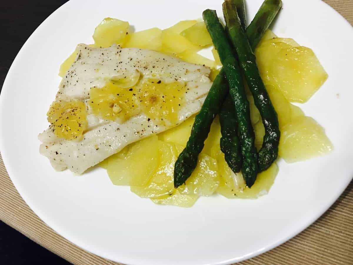 Am reușit pentru prima oară performanța de a merge la cumpărături doar pentru pește și câteva lămâi. Ce crezi, aproape am reușit să îmi țin „lista” nu în totalitate, că am luat două feluri de pește. Primul este acest halibut (ce-ai făcut? halibut) pe care l-am gătit în cel mai simplu mod posibil, în papiotă la cuptor cu cartofi și lămâie.