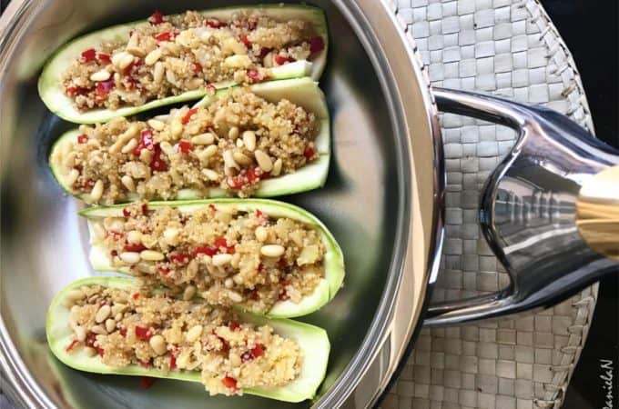Dovlecel umplut nu am mai făcut până acum, iar pentru că m-am decis să încerc, umplutura de quinoa s-a potrivit de minune cu ceea ce îmi doream să obțin.