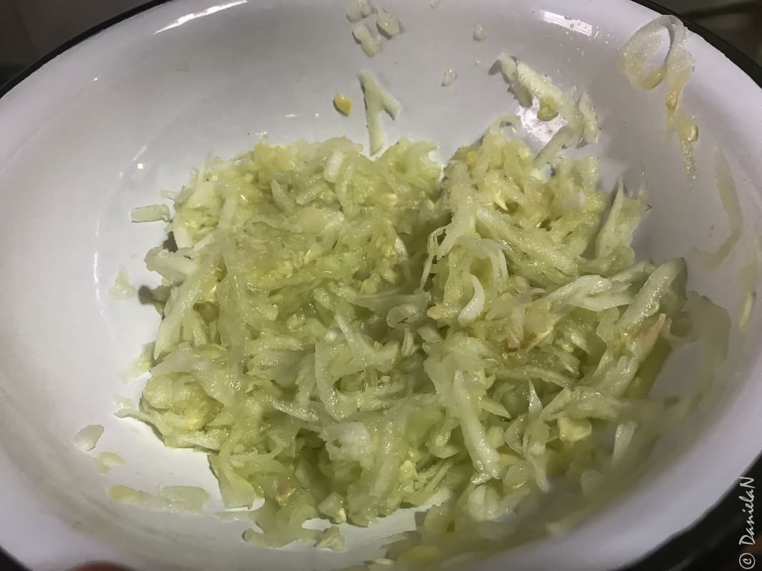 - 150 g dovlecel (dat pe răzătoare și scurs bine de excesul de lichid)