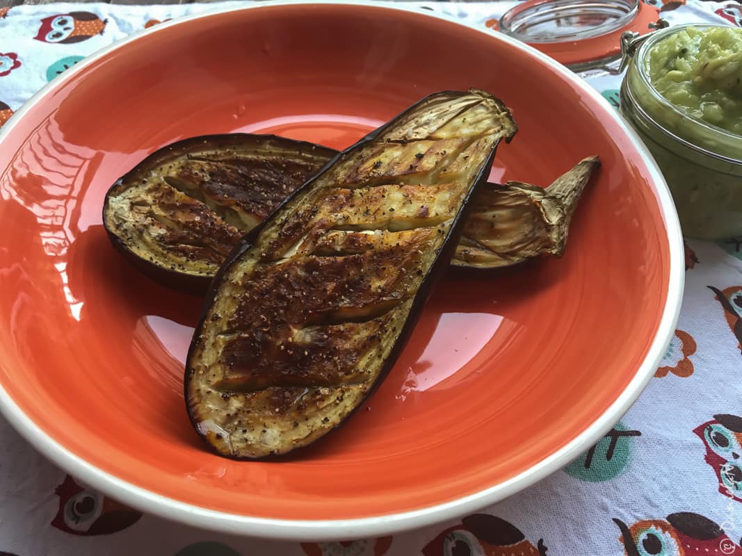 Ca să recapitulăm, vinetele tăiate pe lung, se crestează frumos, se sărează bine, se presară niște piper și un ulei bun de măsline, apoi se introduc în cuptorul preîncălzit la 200 de grade pentru 45 de minute (așa am învățat eu de pe blogul lui Exarhu acum mai bine de 1 an).