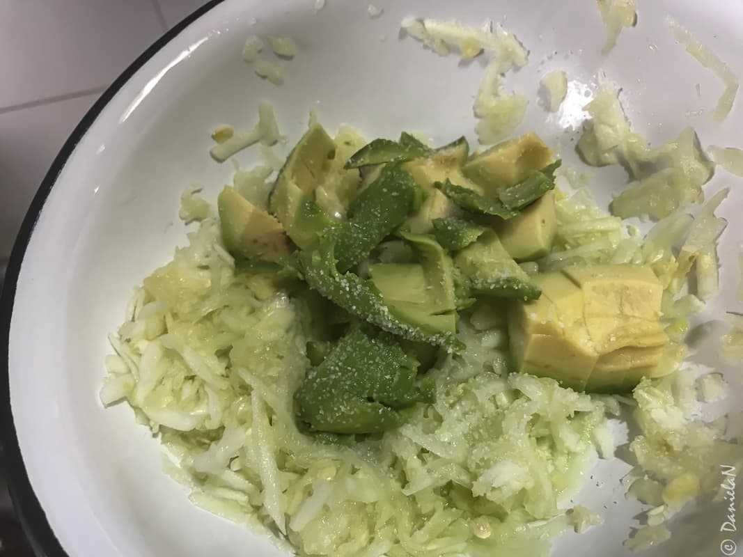 Când am spus că nu am pus iaurt pentru că erau prea multe lactate într-o singură zi nu am mințit, acesta a fost motivul pentru care am pus avocado. Că din schimbarea asta am descoperit un super tzatziki fără iaurt, nu știu ce să zic, se numește creativitate, sclipire… ce să mai, o mare bucurie pentru toți veganii.