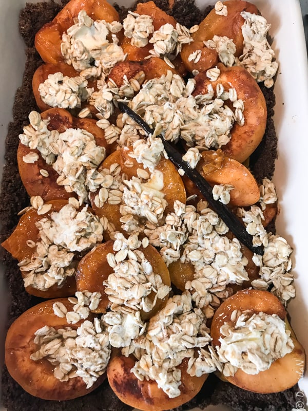 Am adăugat fructele , iar deasupa am presărat amestecul de ovăz cu unt.