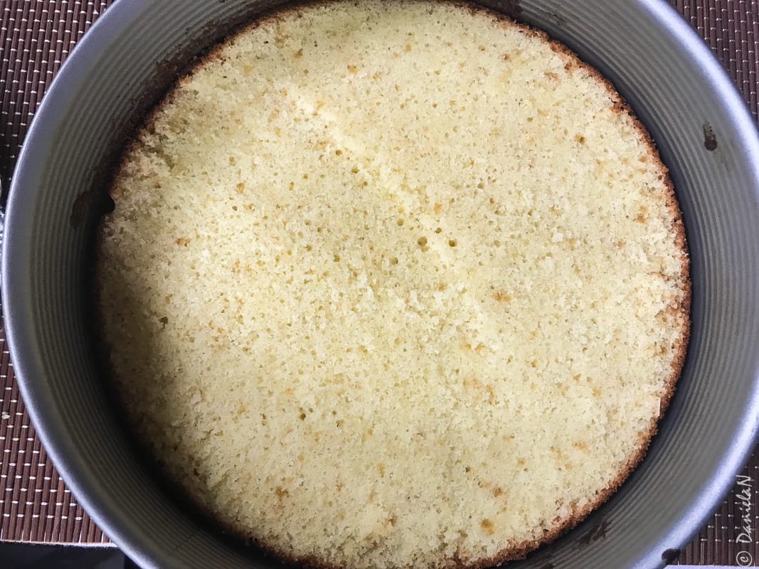 - Am lăsat blatul să se răcească complet și abia după aceea am adăugat umplutura. Am tăiat blatul în 3 și l-am montat tot în forma cu pereți detașabili.