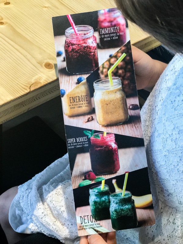 Pliantul cu smoothie-uri colorate este și el la loc de cinste pentru orice dorește să se bucure de o băutură fresh și bogată în vitamine. Mi se par ideale pentru cine ajunge la D20 pentru un mic dejun, mai ales că eu sunt mare iubitoare a acestor băuturi.