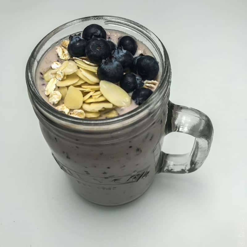 Mic dejun: smoothie cu avocado, lapte de quinoa, afine, avocado, fulgi de ovăz și fulgi de migdale. Cafeaua mea cu 100 ml lapte vegetal este nelipsită în fiecare dimineață