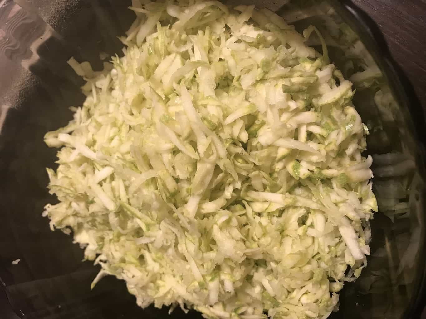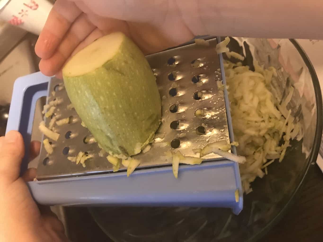 Dovlecelul l-am dat pe răzătoare, adică ea l-a dat, iar eu l-am scurs de excesul de apă.