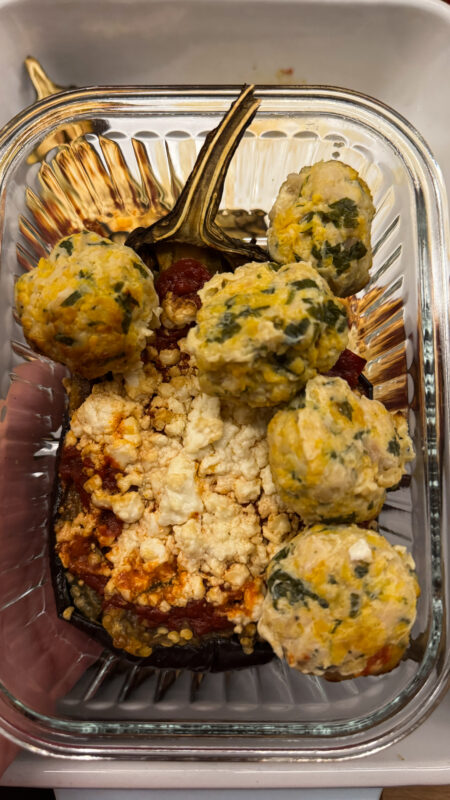 Masa 2: vinete umplute cu sos de roșii și brânză feta/ Pentru Domnul B caserola cu vinete și chiftele de curcan la cuptor