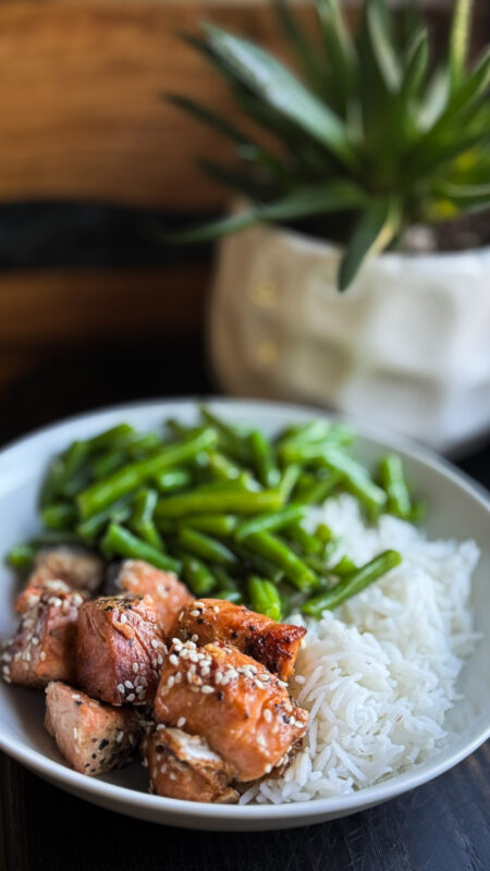 Masa 3: bol cu orez, somon și fasole verde