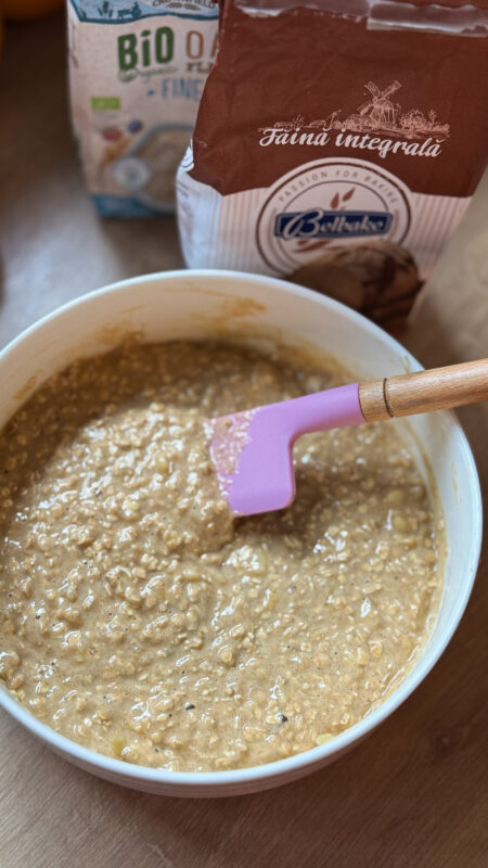 Gustări: chec cu banane și fulgi de ovăz/ cottage cheese cu nuci pecan