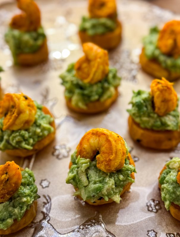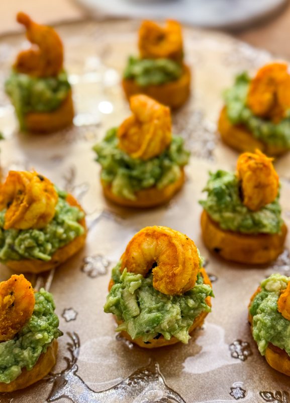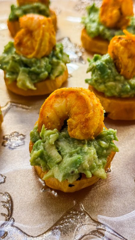 CROSTINI DIN CARTOF DULCE CU CREVEȚI ȘI AVOCADO