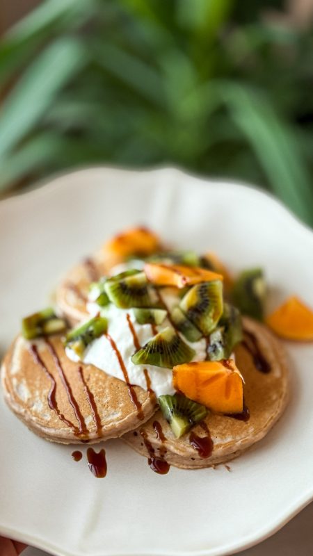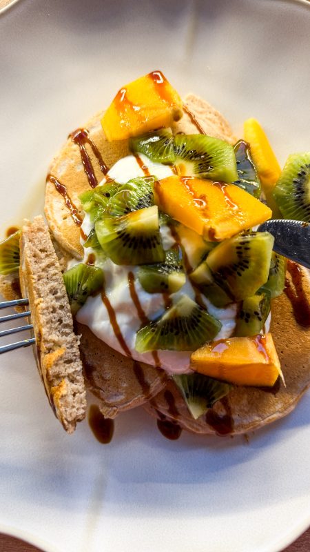 Masa 1: pancakes cu iaurt grecesc, făină integrală și banană