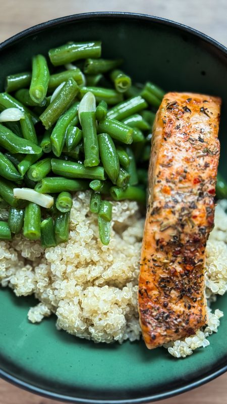 Masa 3: somon la airfryer cu fasole verde și quinoa