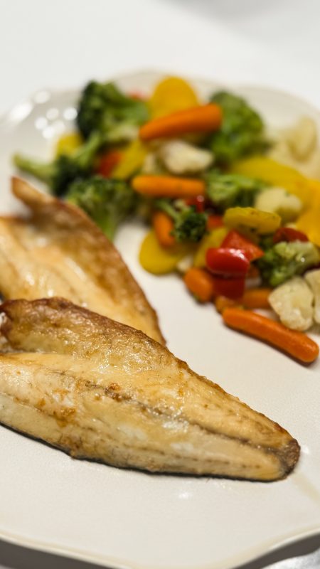 Masa 3: file de biban la tigaie cu legume freshona și salată