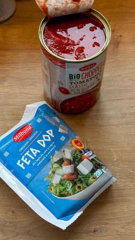 Am acoperit cu un capac și am lăsat pentru aproxcimativ 15 minute. La final am presărat 150 grame brânză feta și o legătură de pătrunjel.